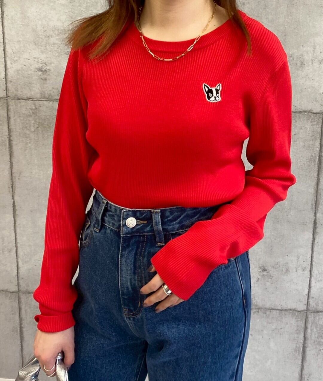 フレンチブルの刺繍がポイントになったニット♡