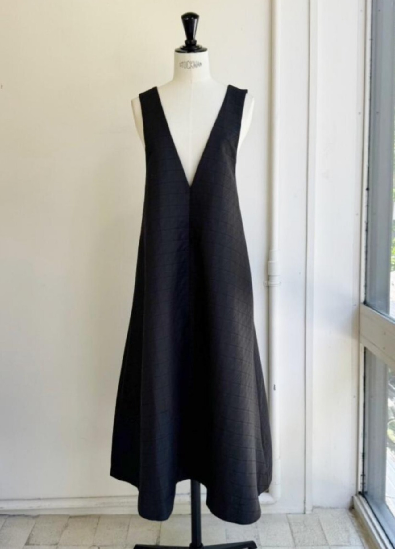 程よいAラインに深めのVネックデザインで