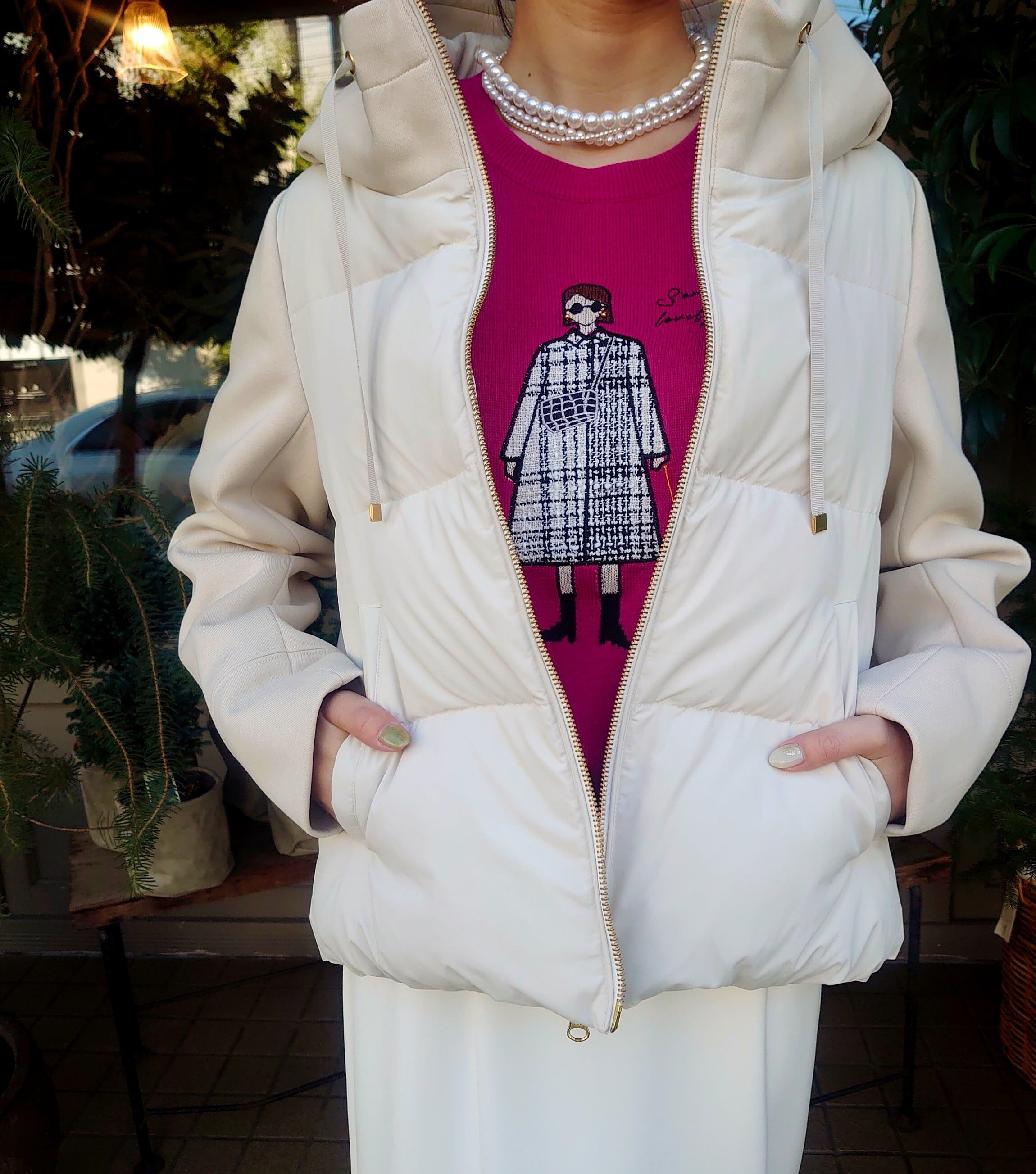 ダウンベストを組み合わせた