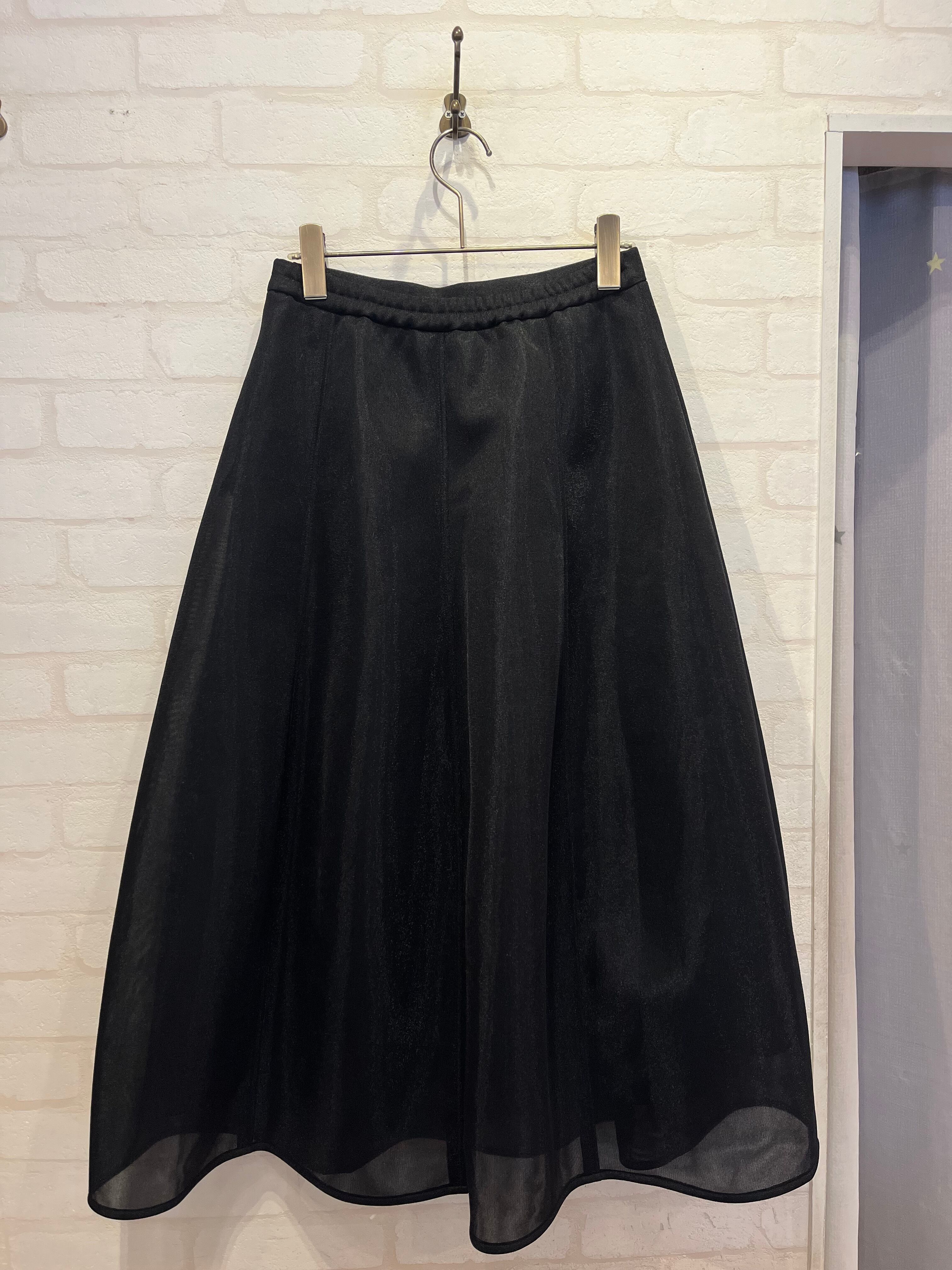 ふんわりとしたシルエットが上品な印象を与えてくれるシアーダンボール素材のフレアスカート。