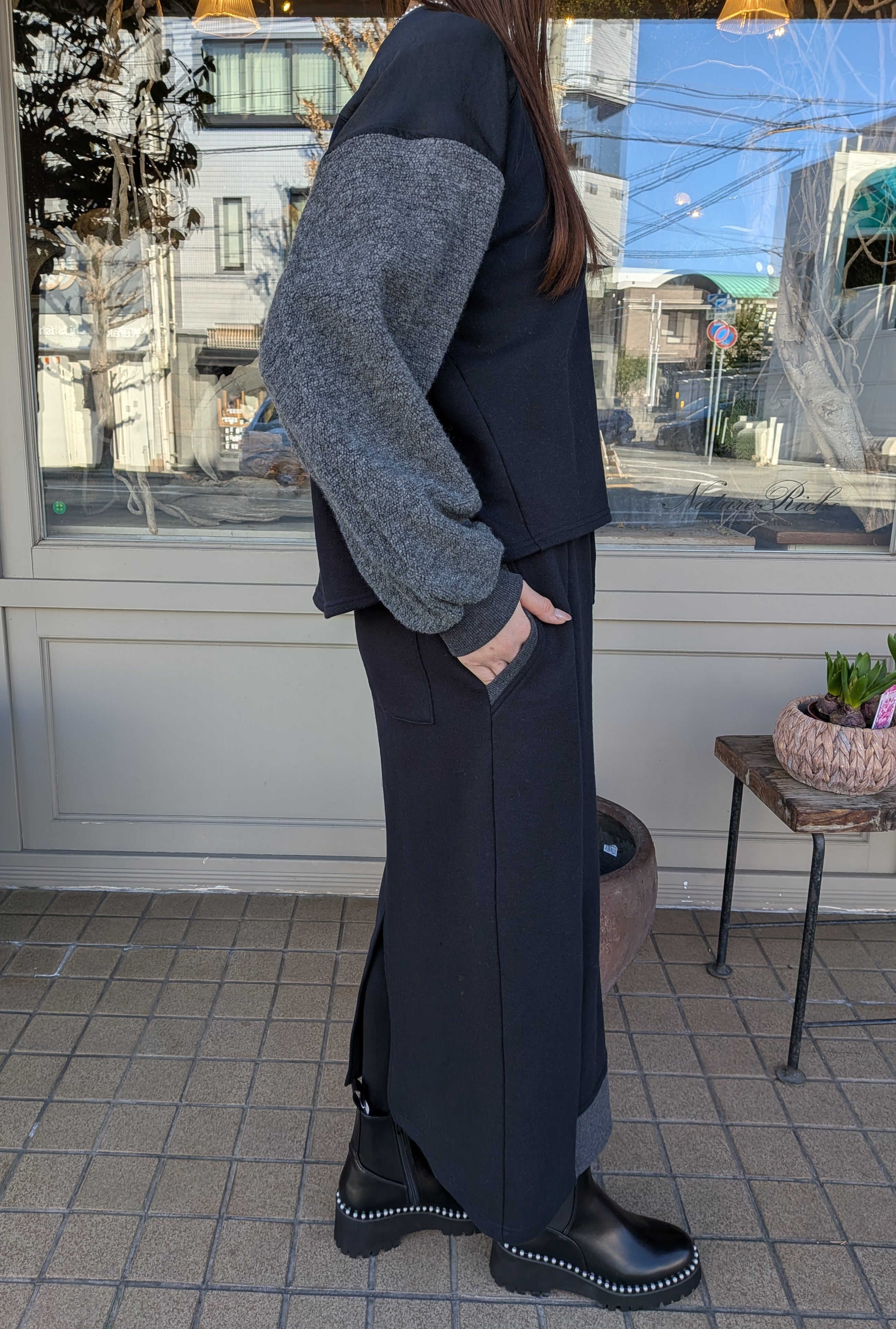 ※同素材のコンビネーションジャージープルオーバーとセットアップでのご着用か可能です