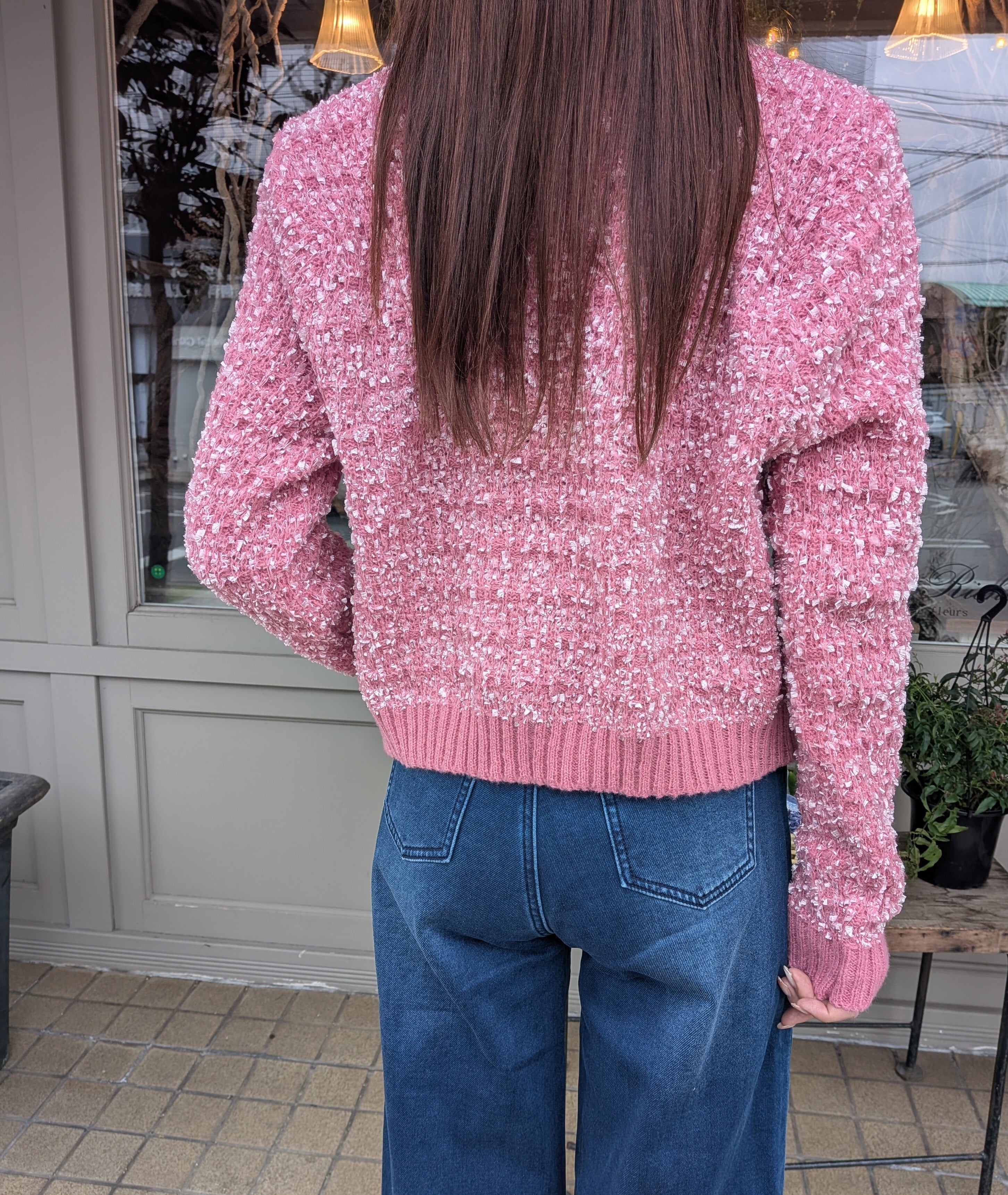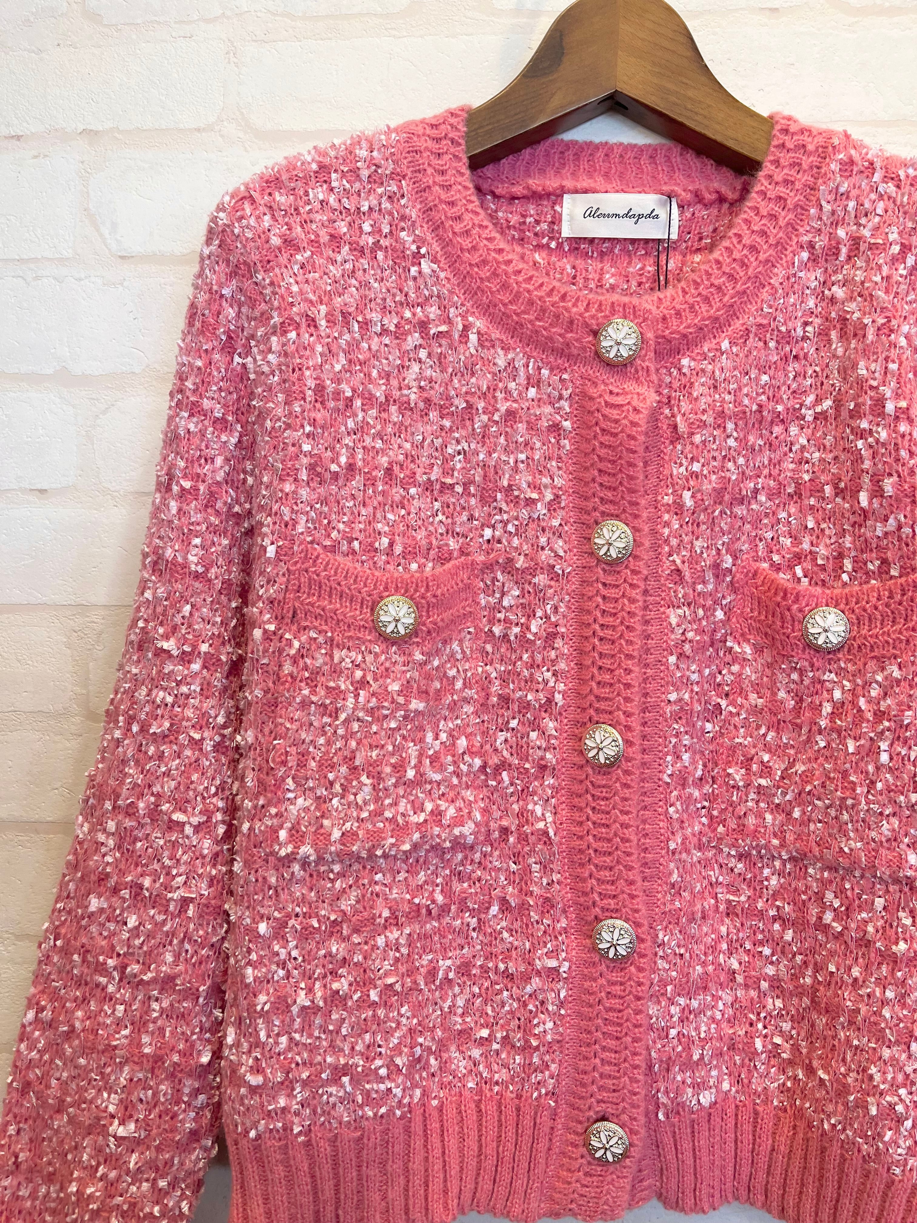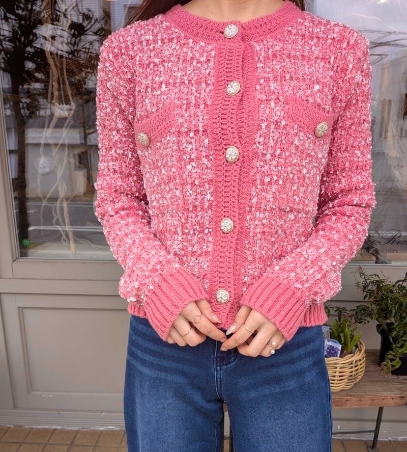 ツイード風ニットカーディガン