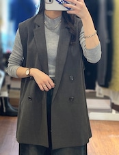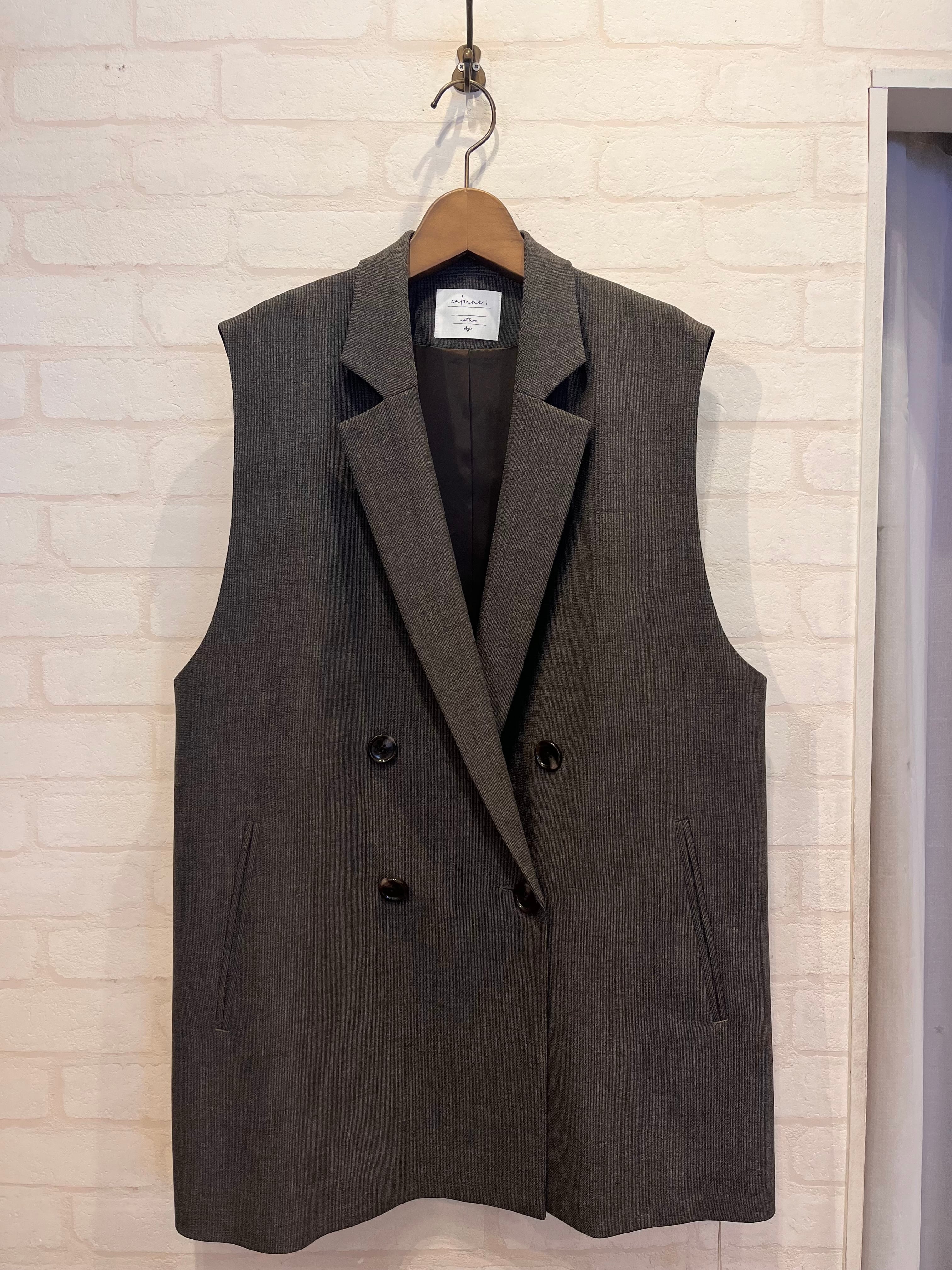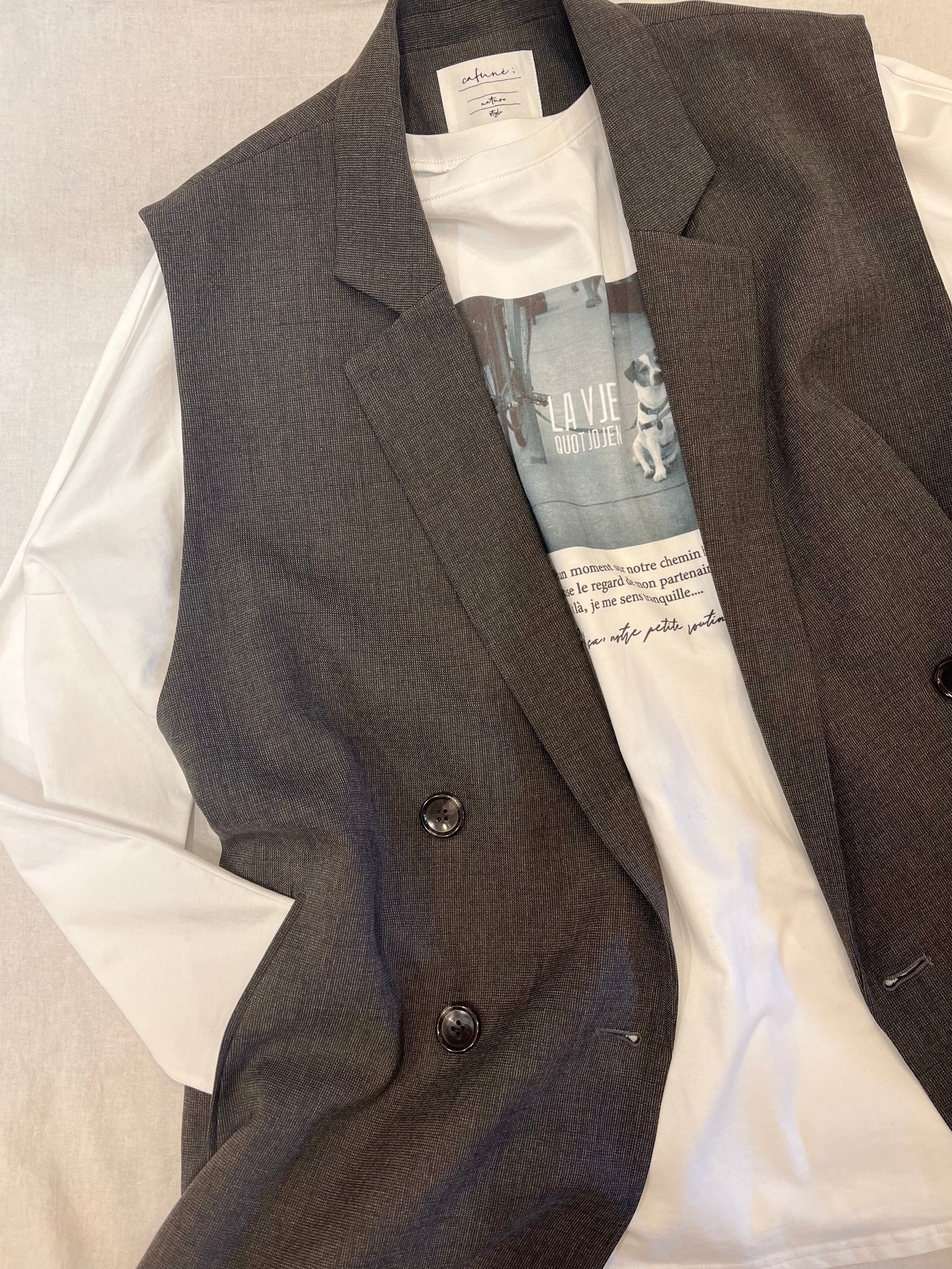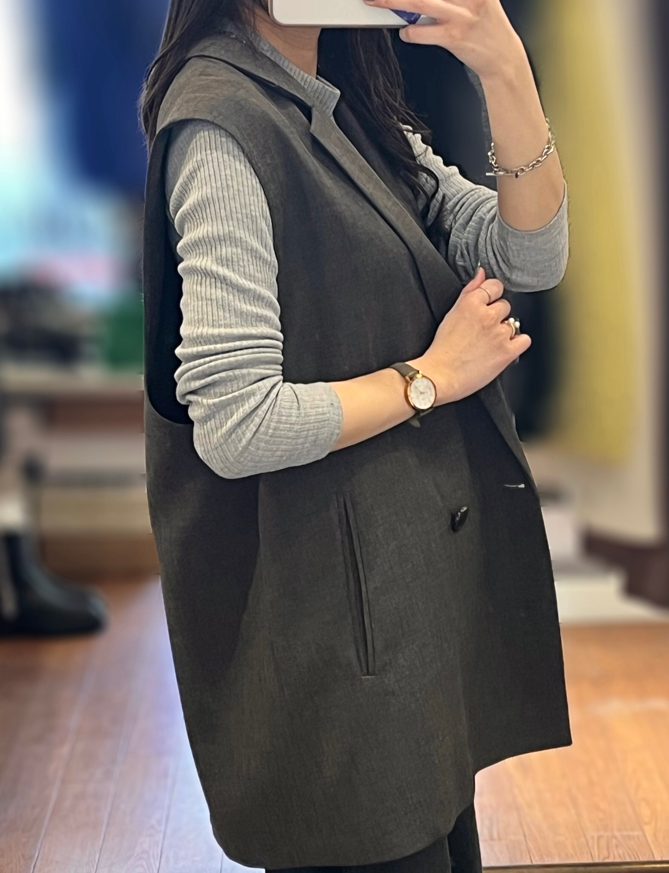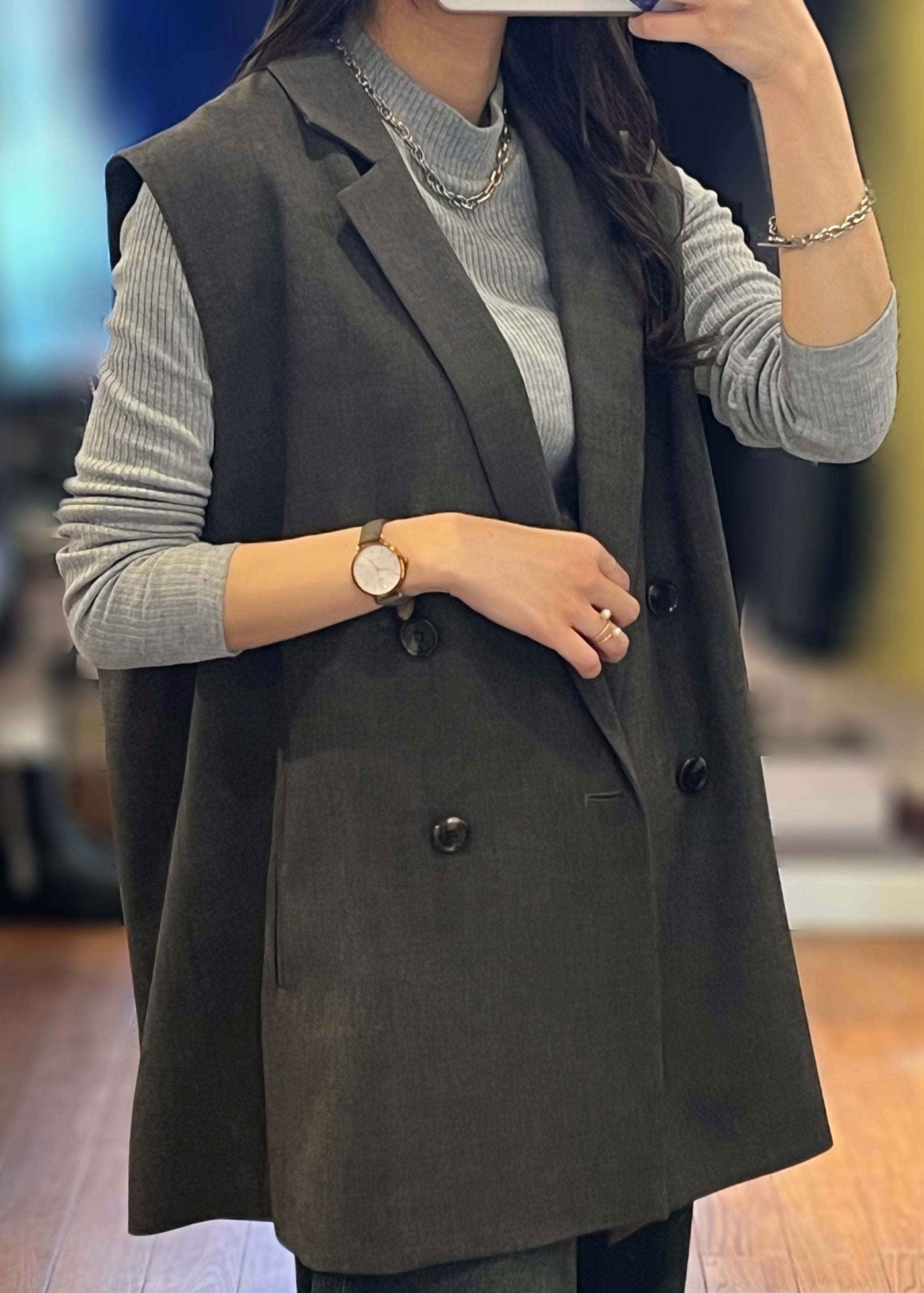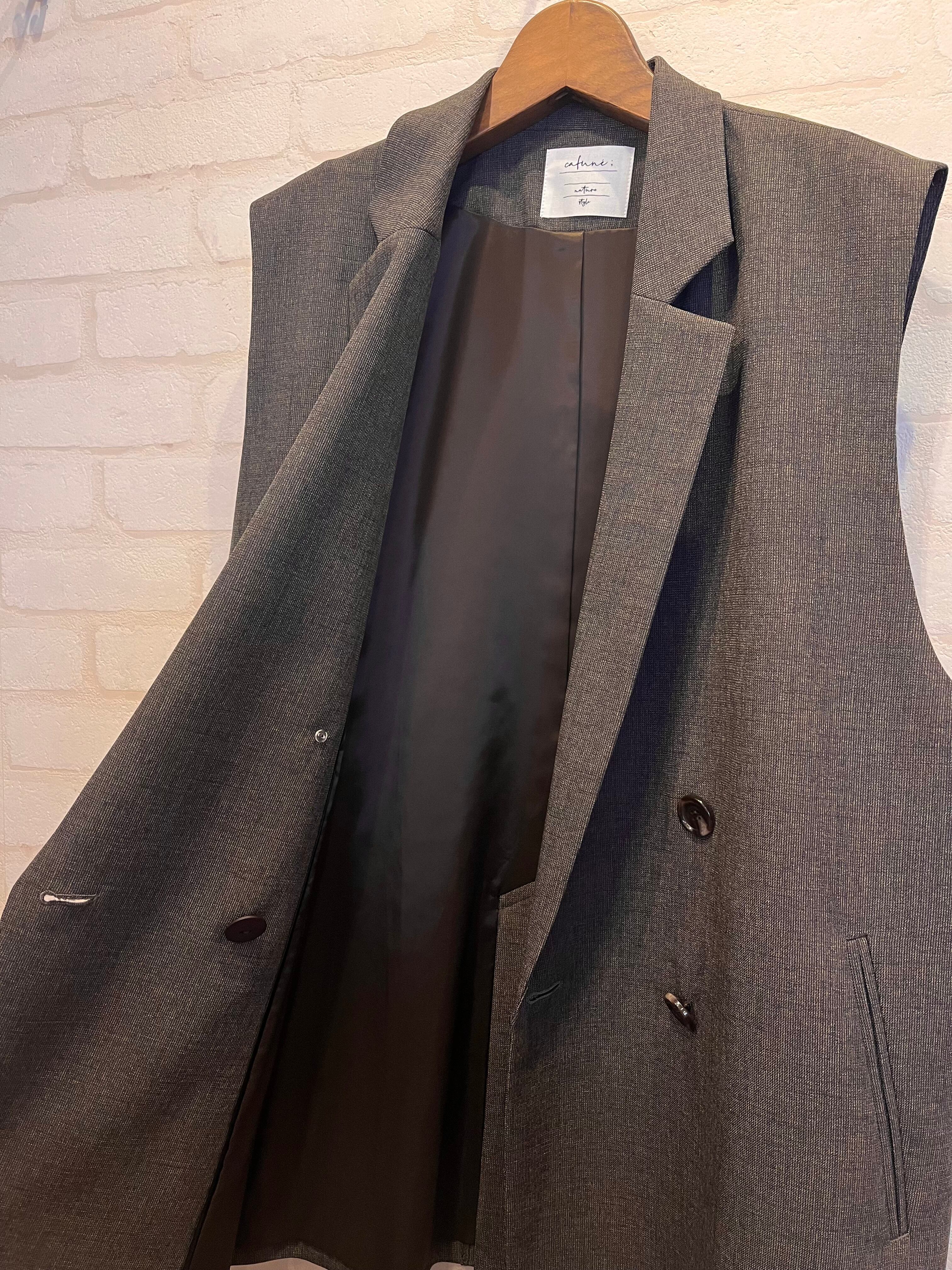 シーズンレスに使えるダブルボタンジャケットジレ。