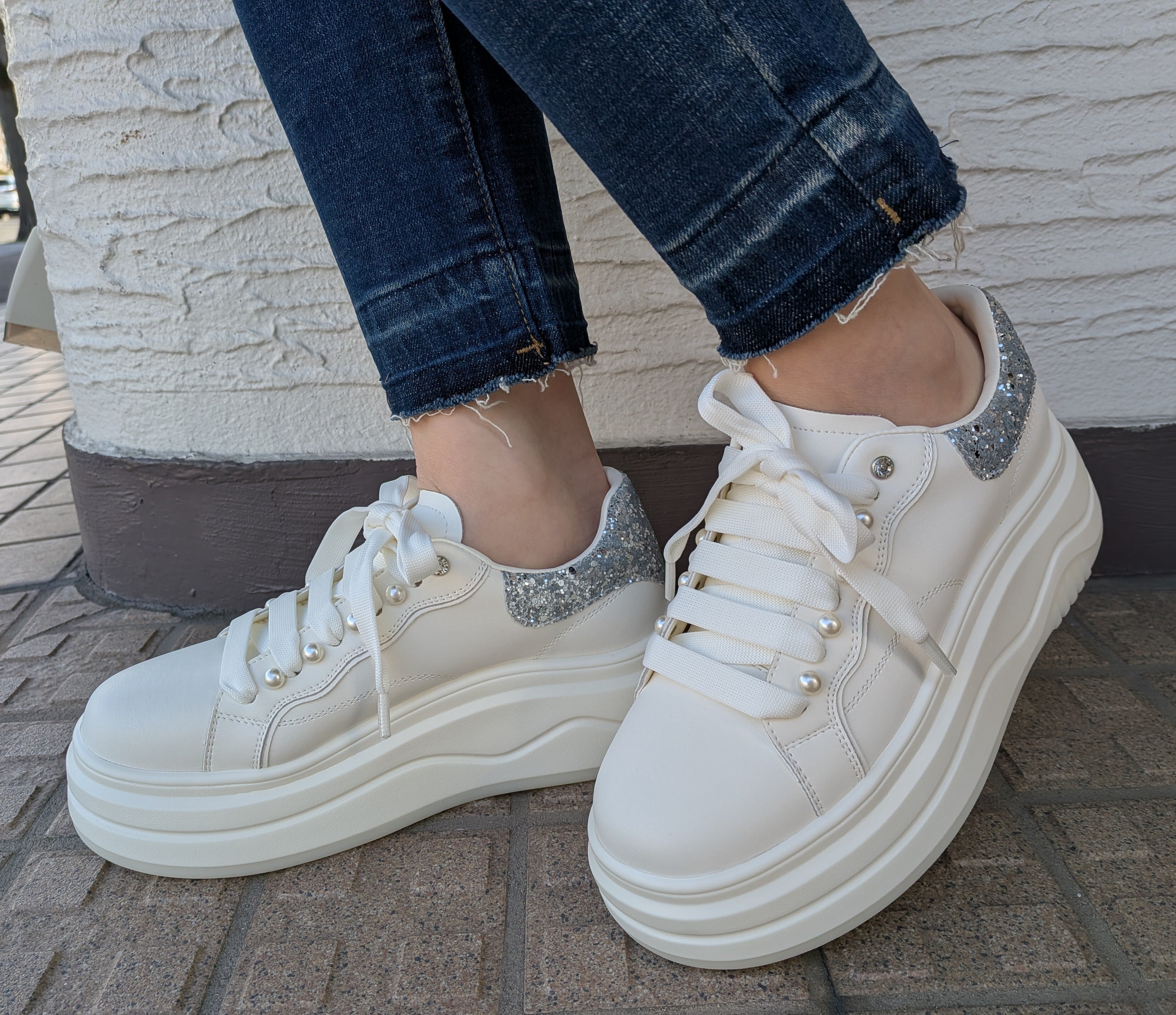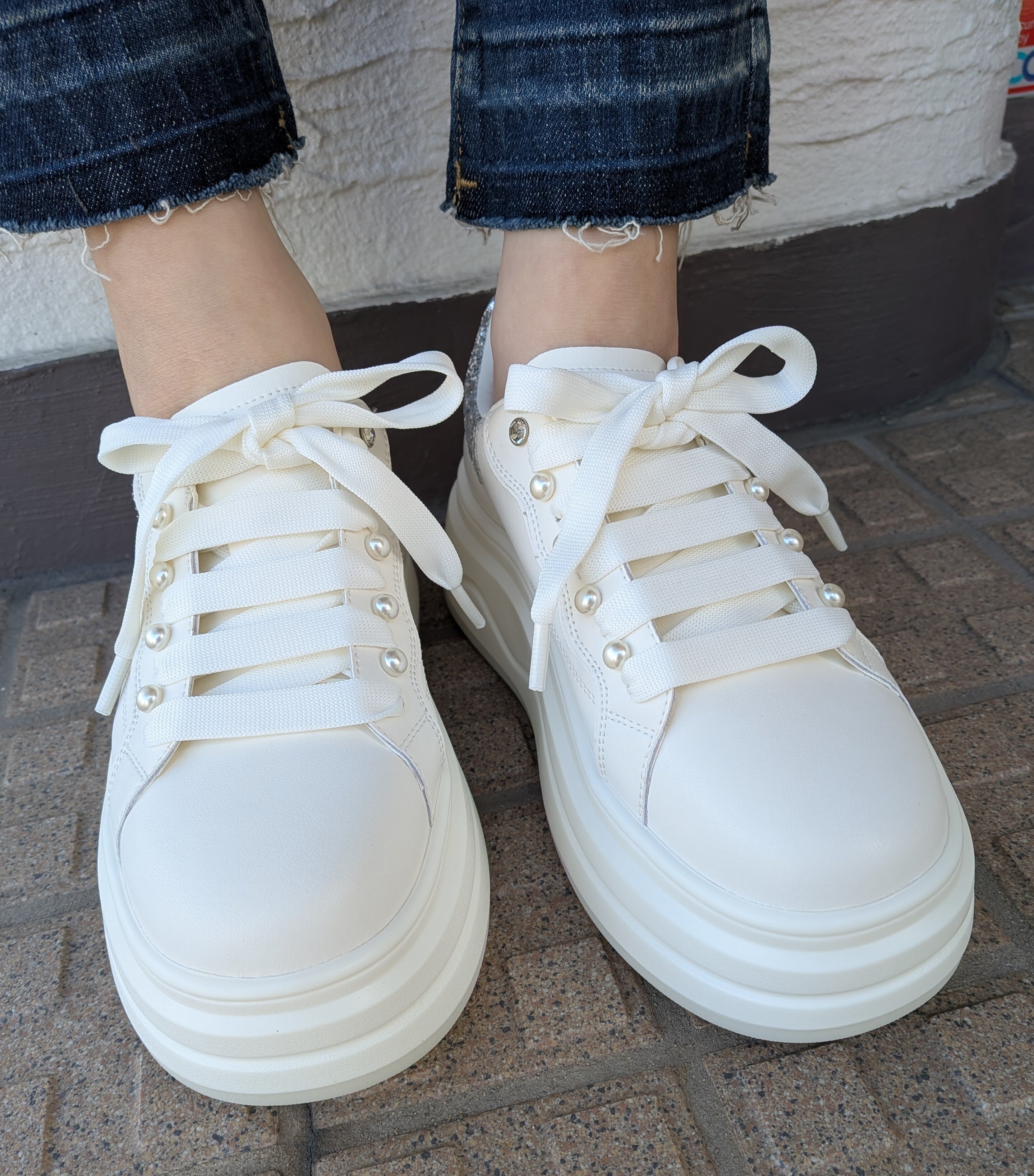 本革厚底パールスニーカー♡