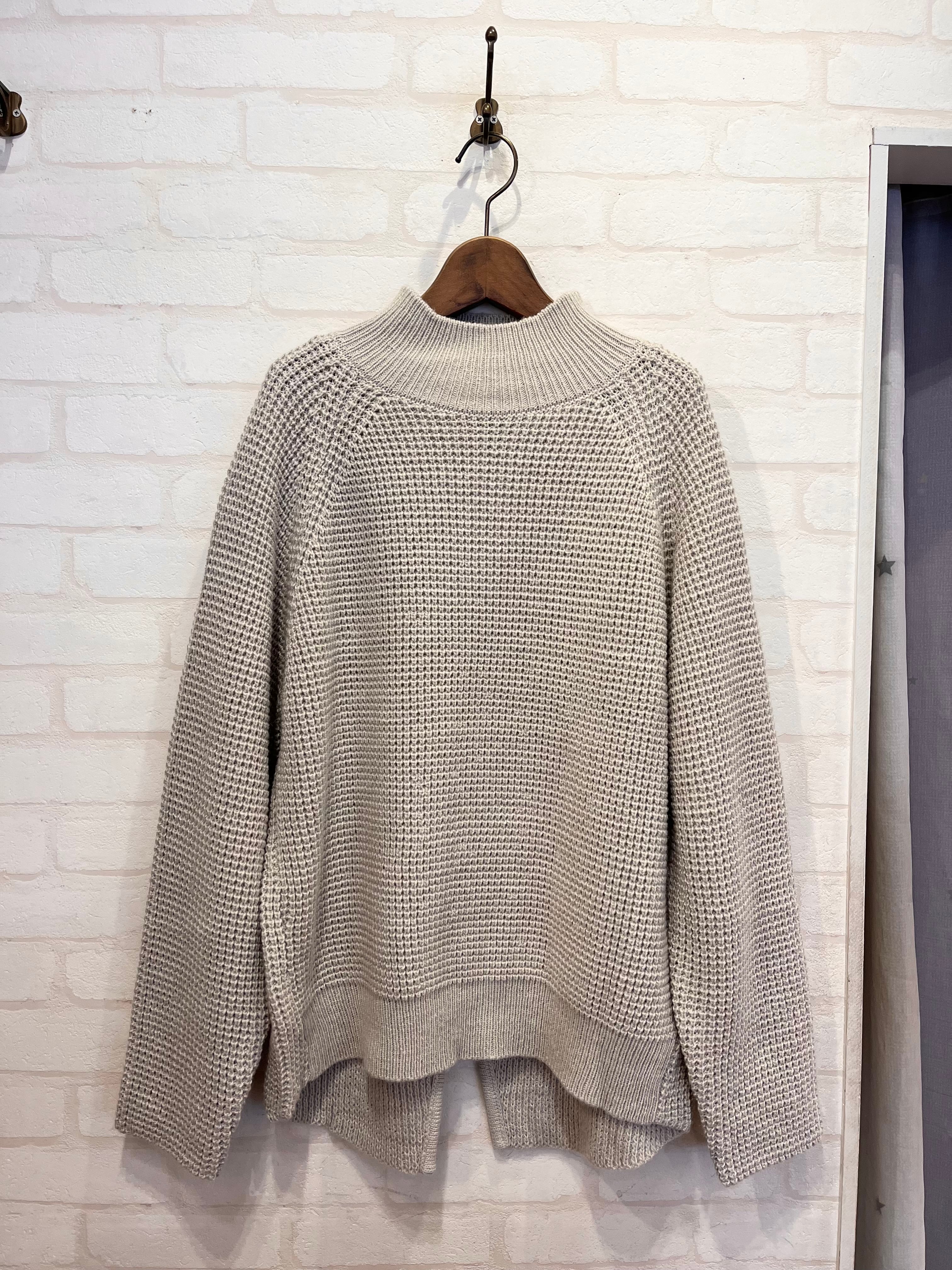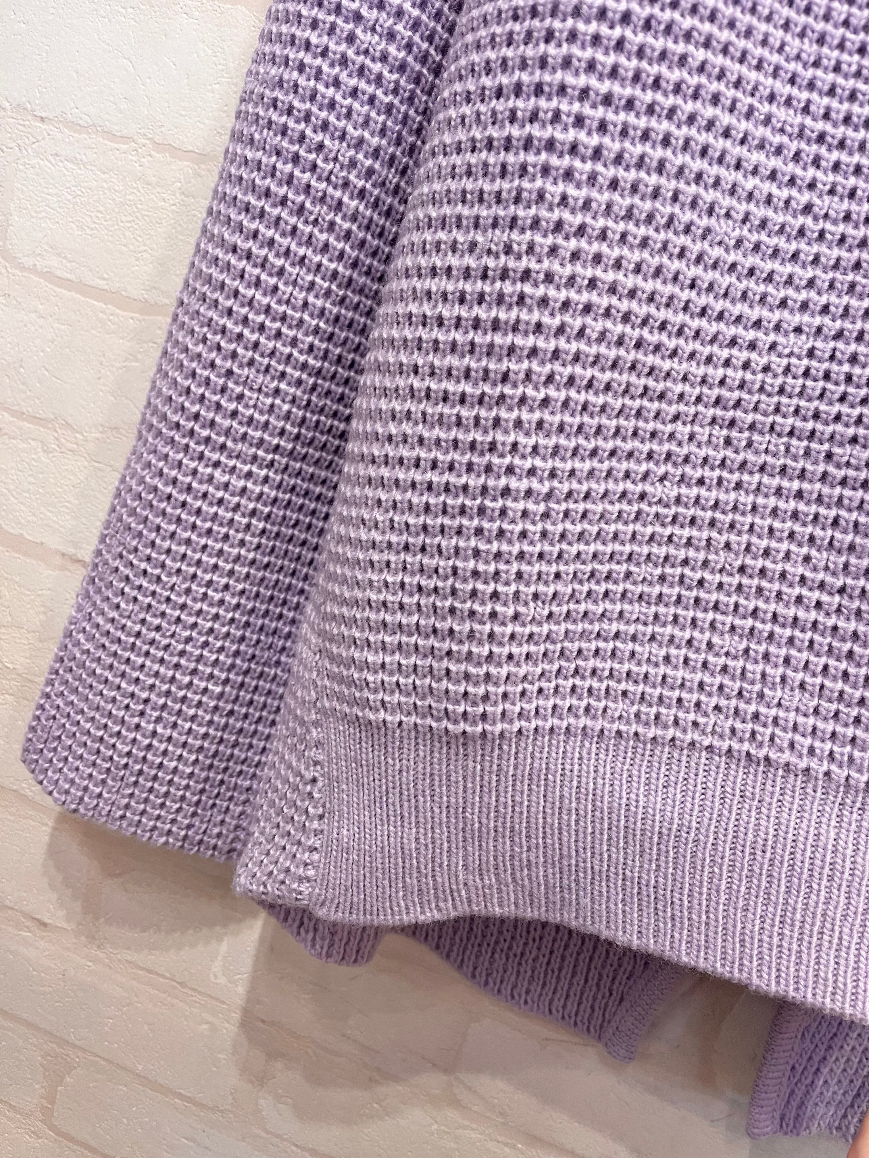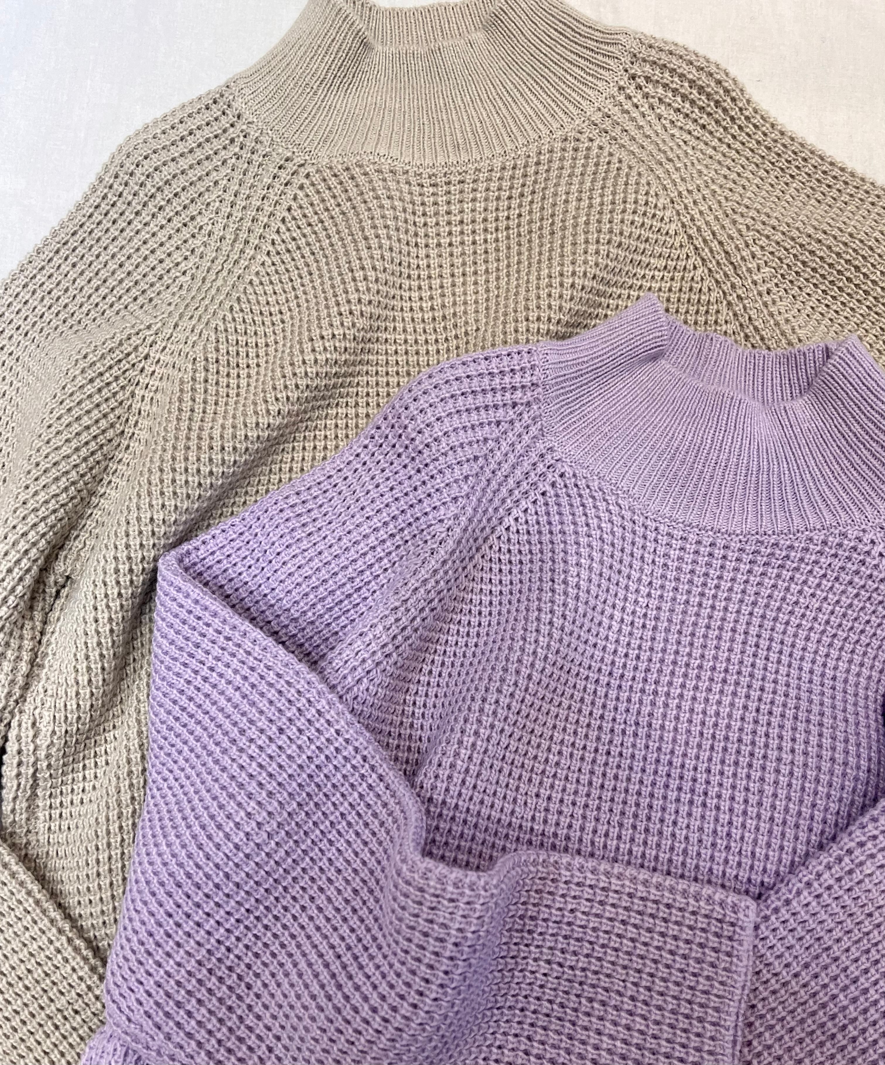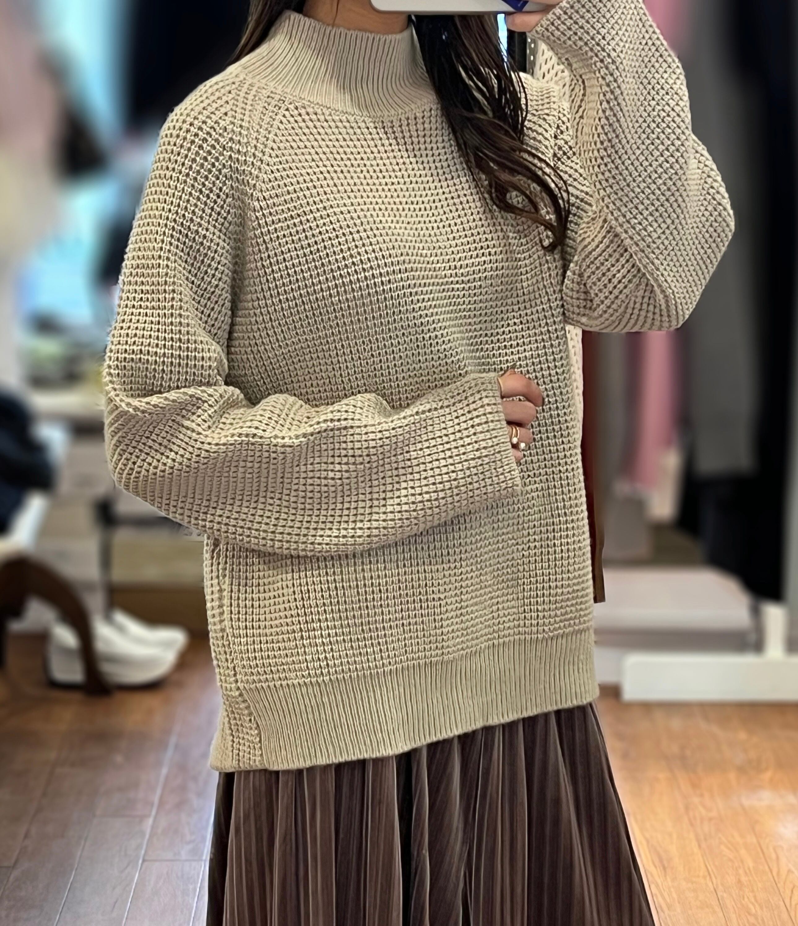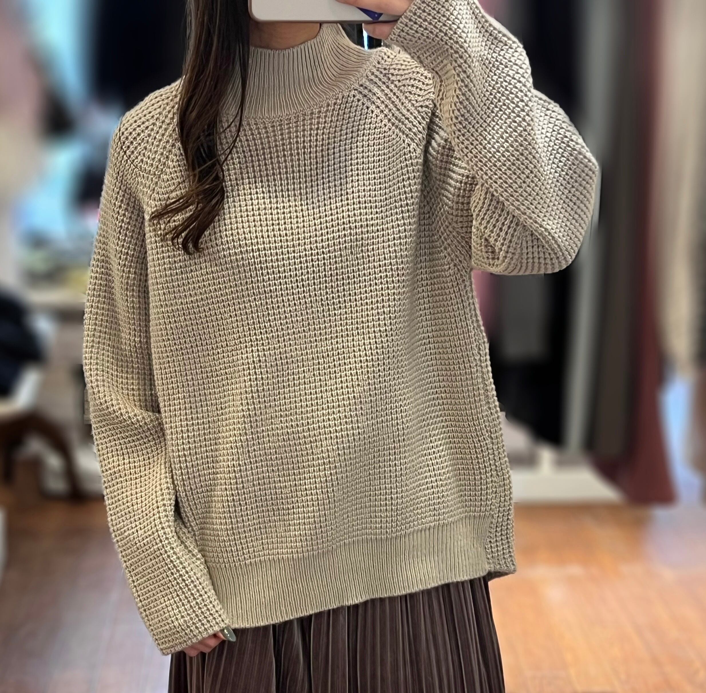ワッフル編みがかわいいハイネックニット。