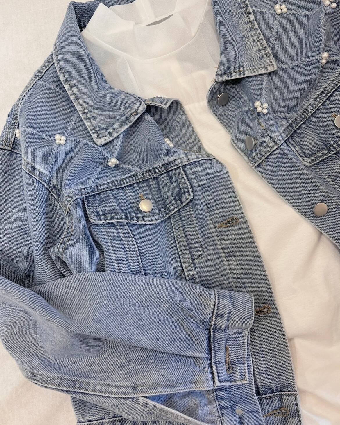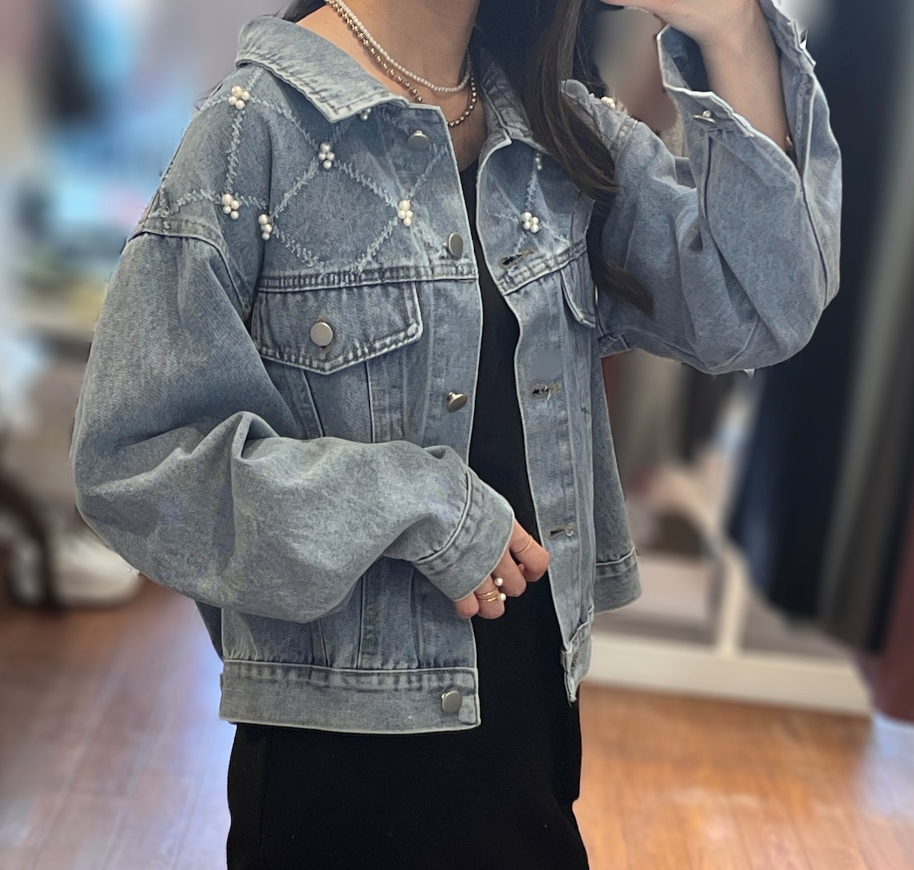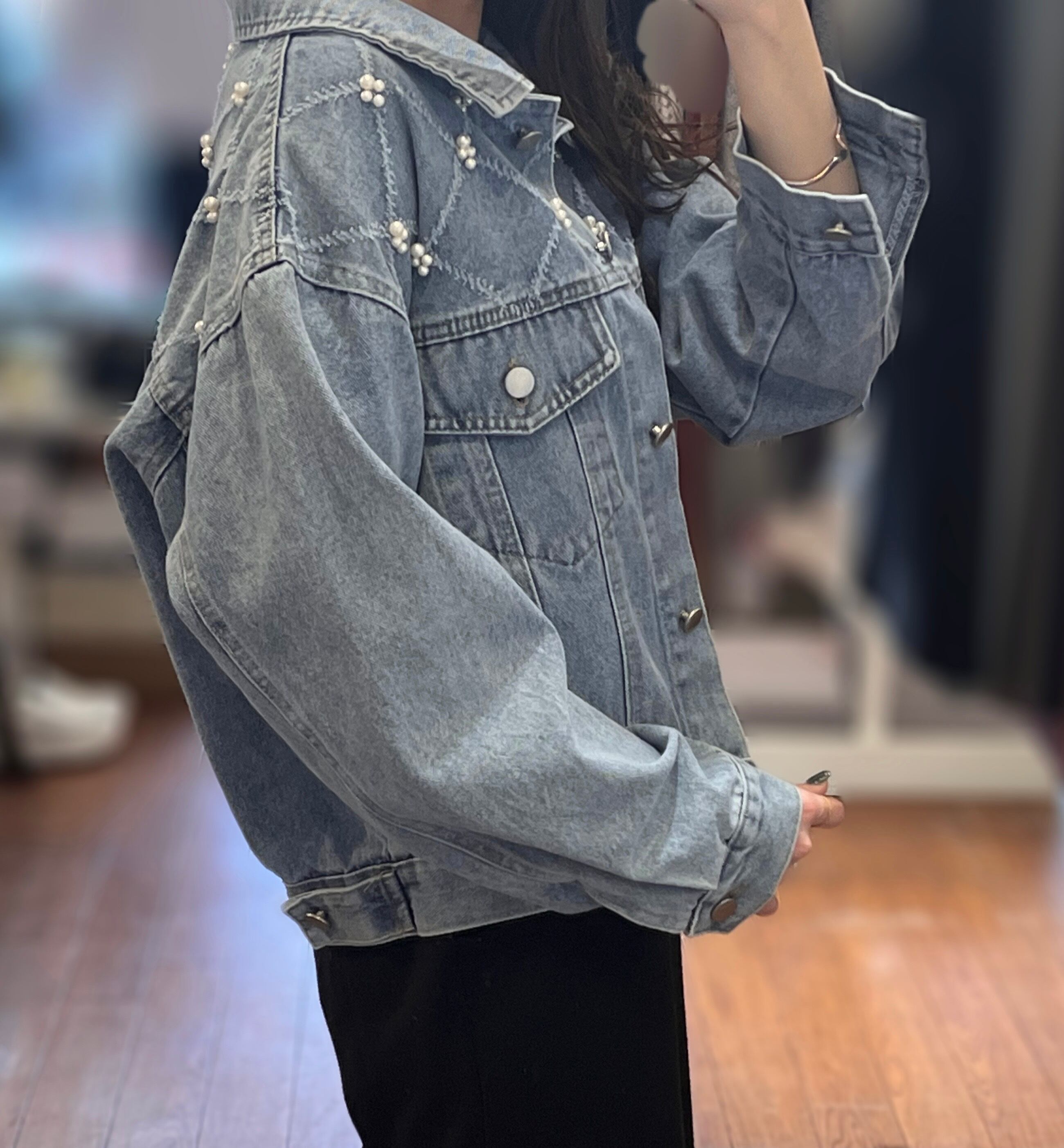 万能なデニムジャケットに女性らしさがプラスされいつものコーデに合わせるだけで華やかな印象に。