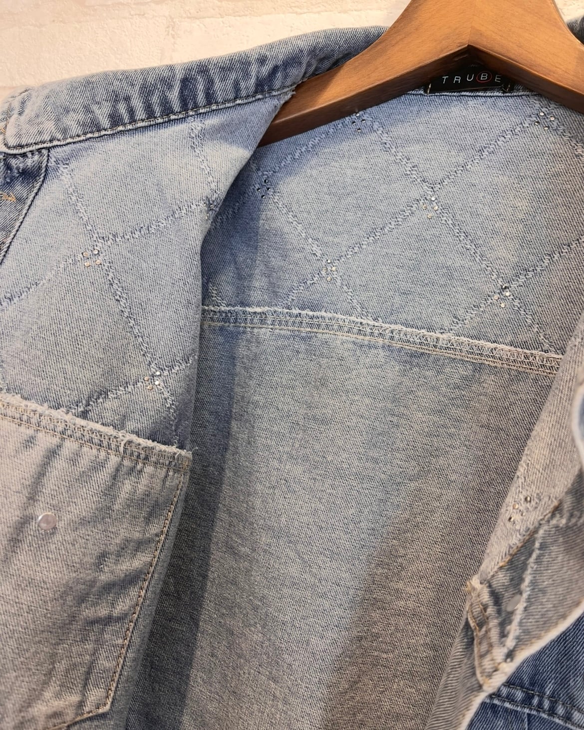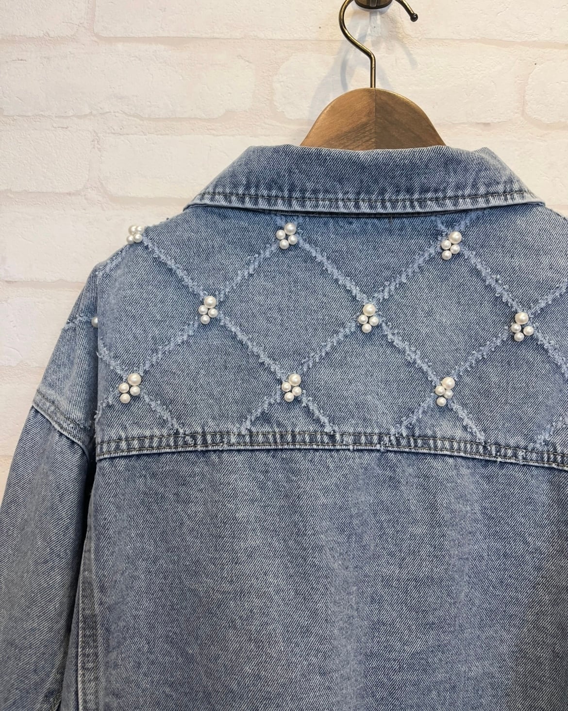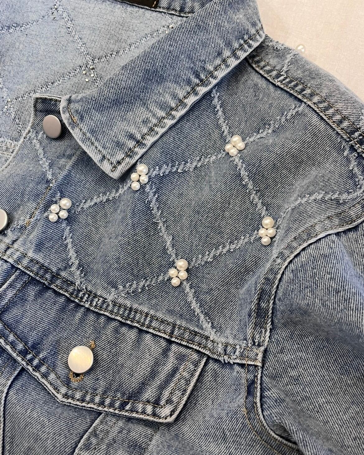 万能なデニムジャケットに女性らしさがプラスされいつものコーデに合わせるだけで華やかな印象に。