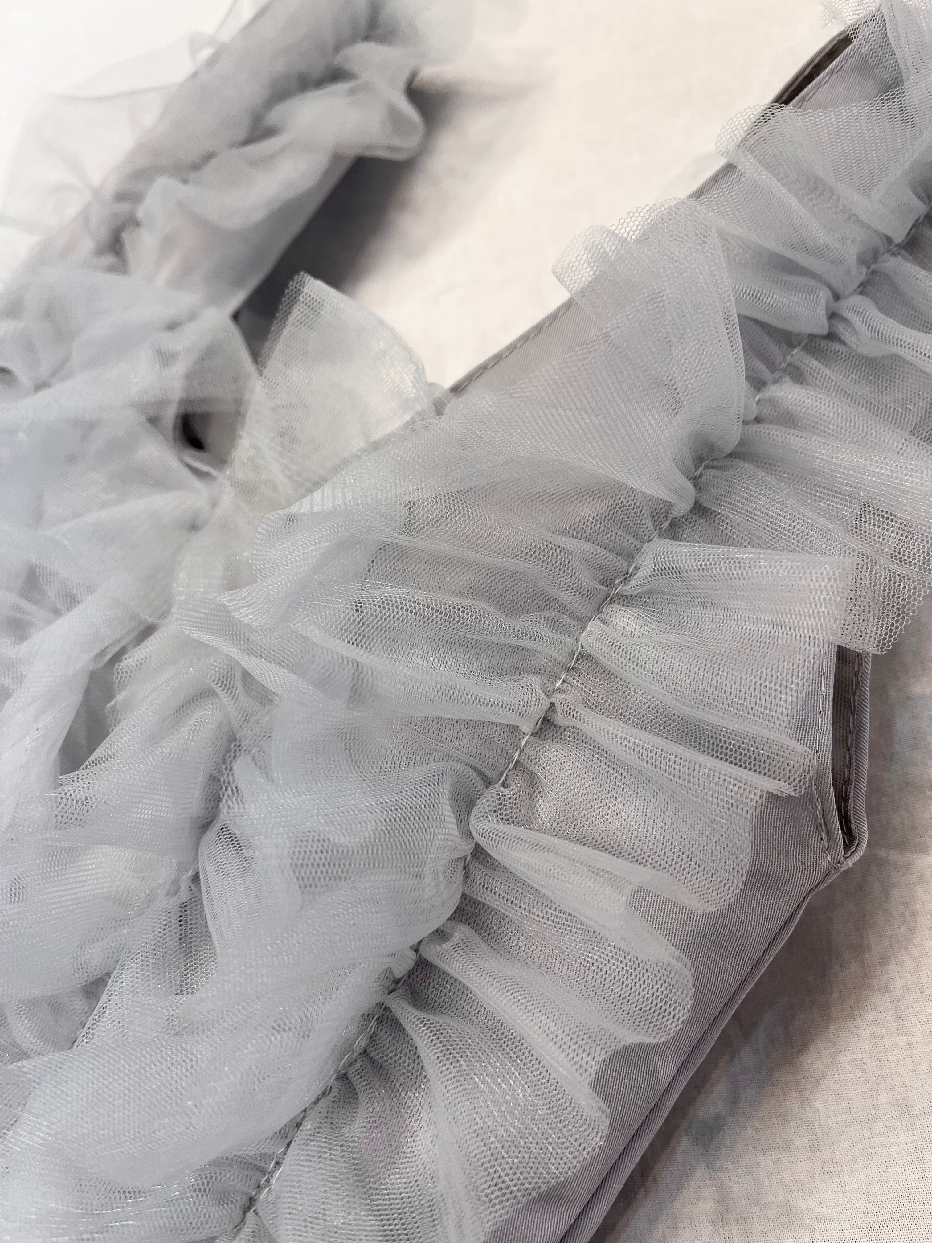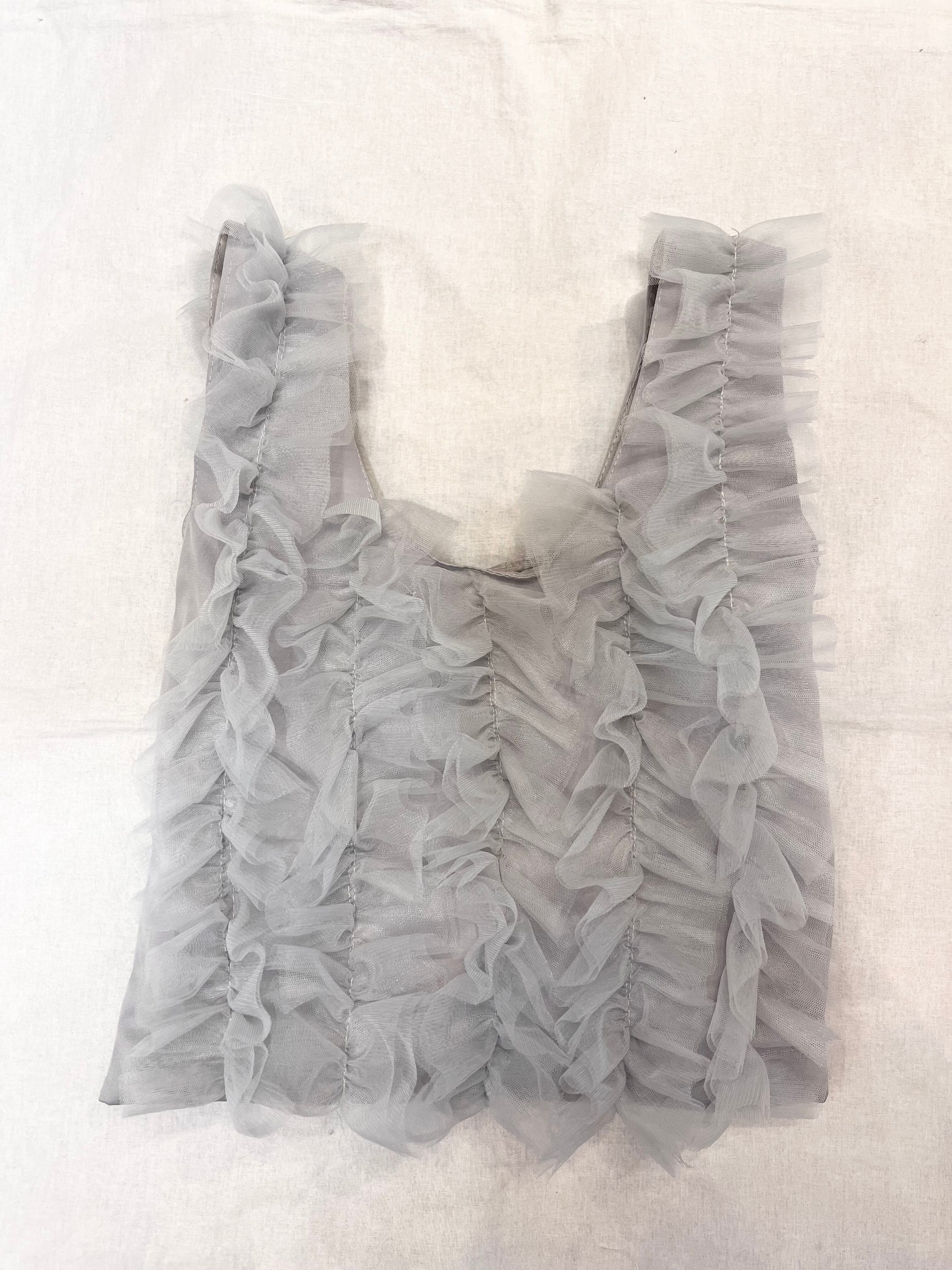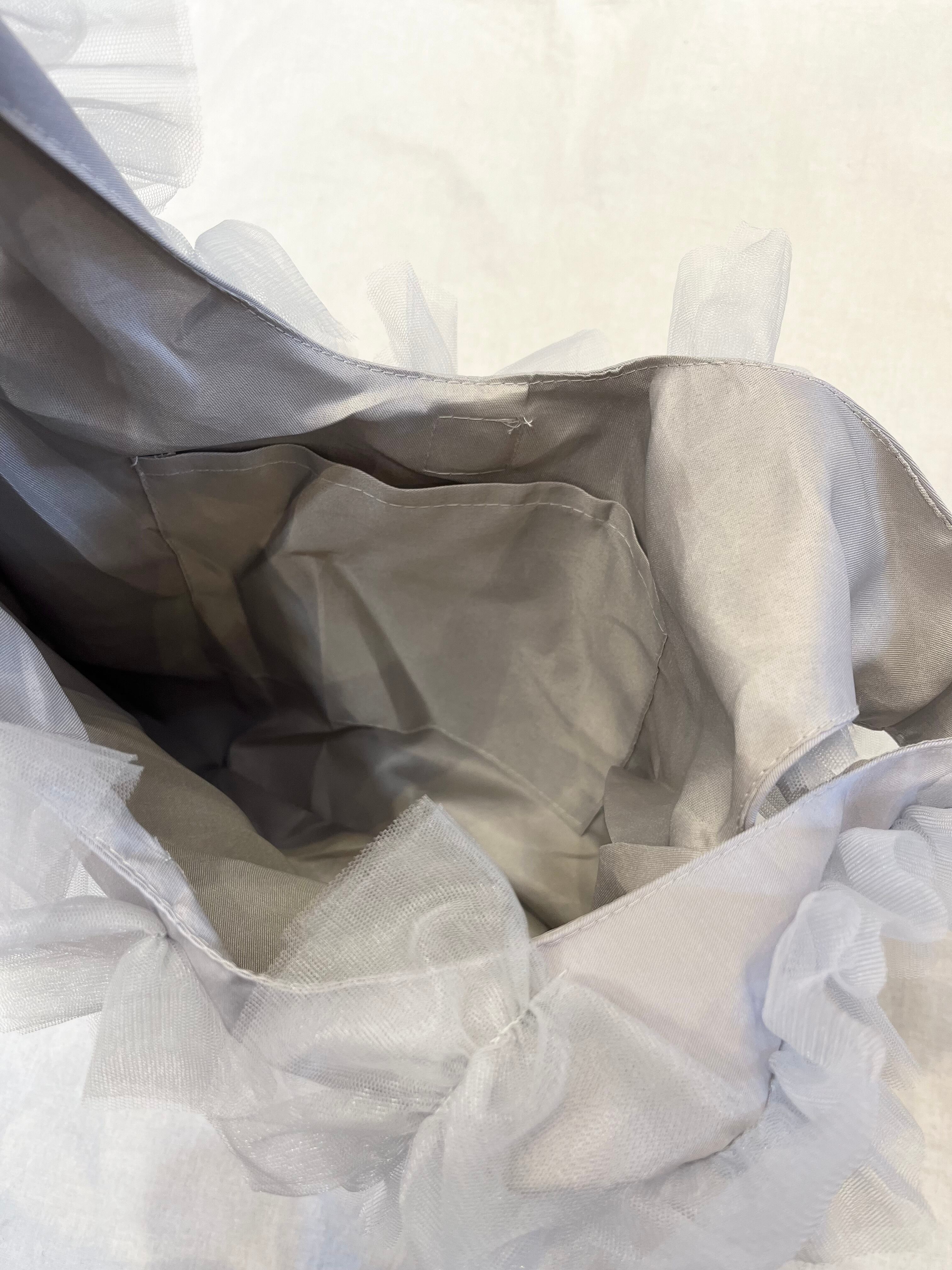 大胆なチュールフリルが全面にあしらわれたマルシェバッグ。