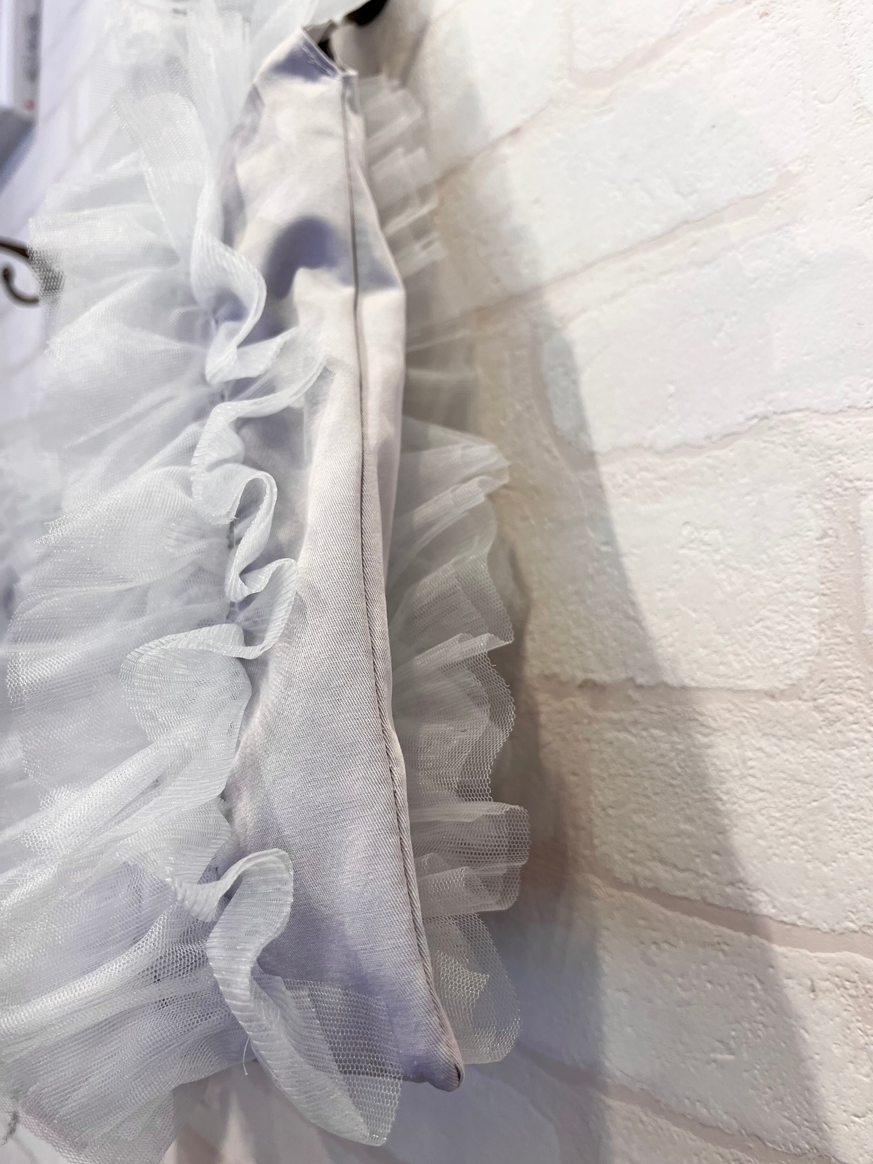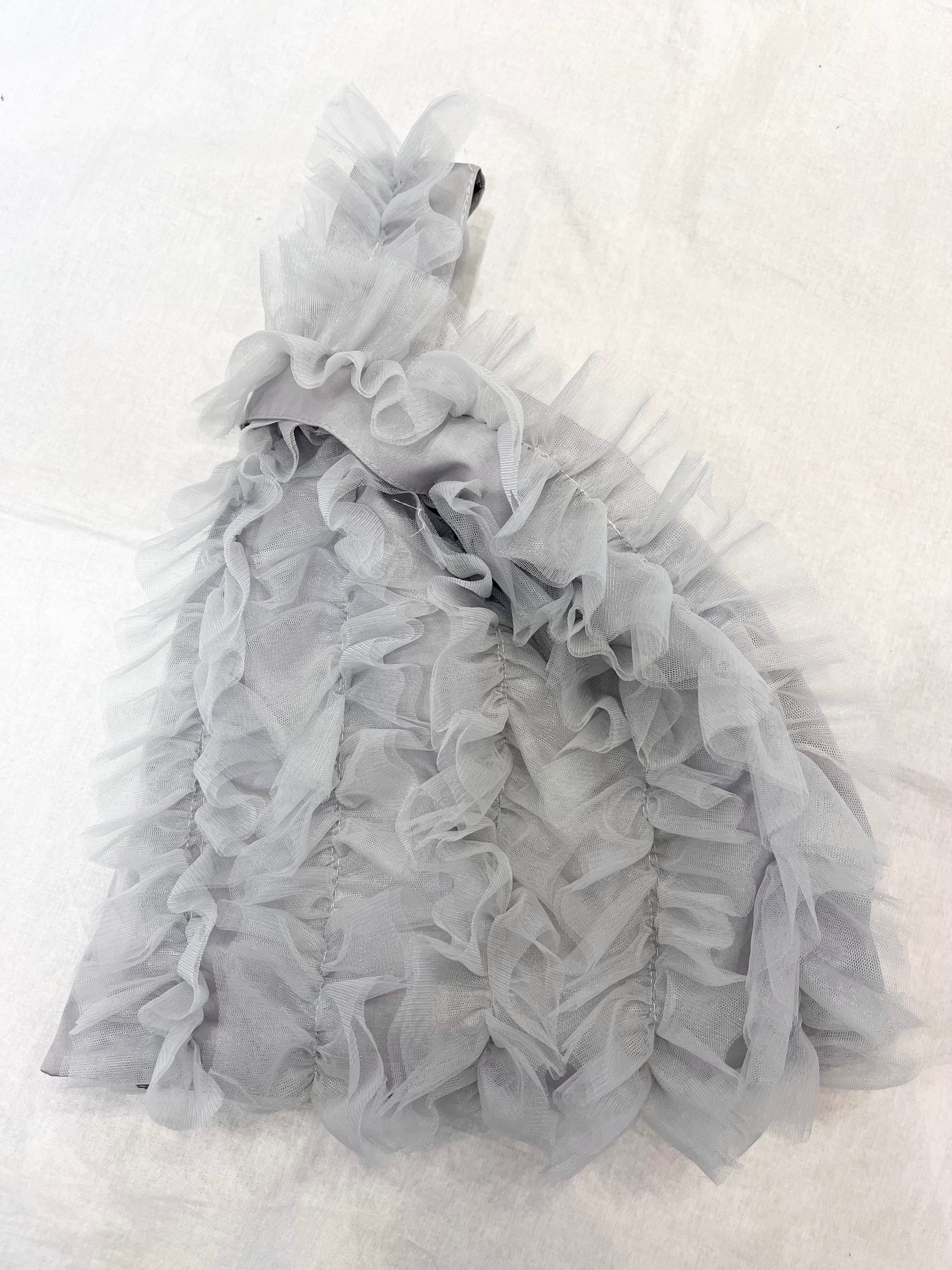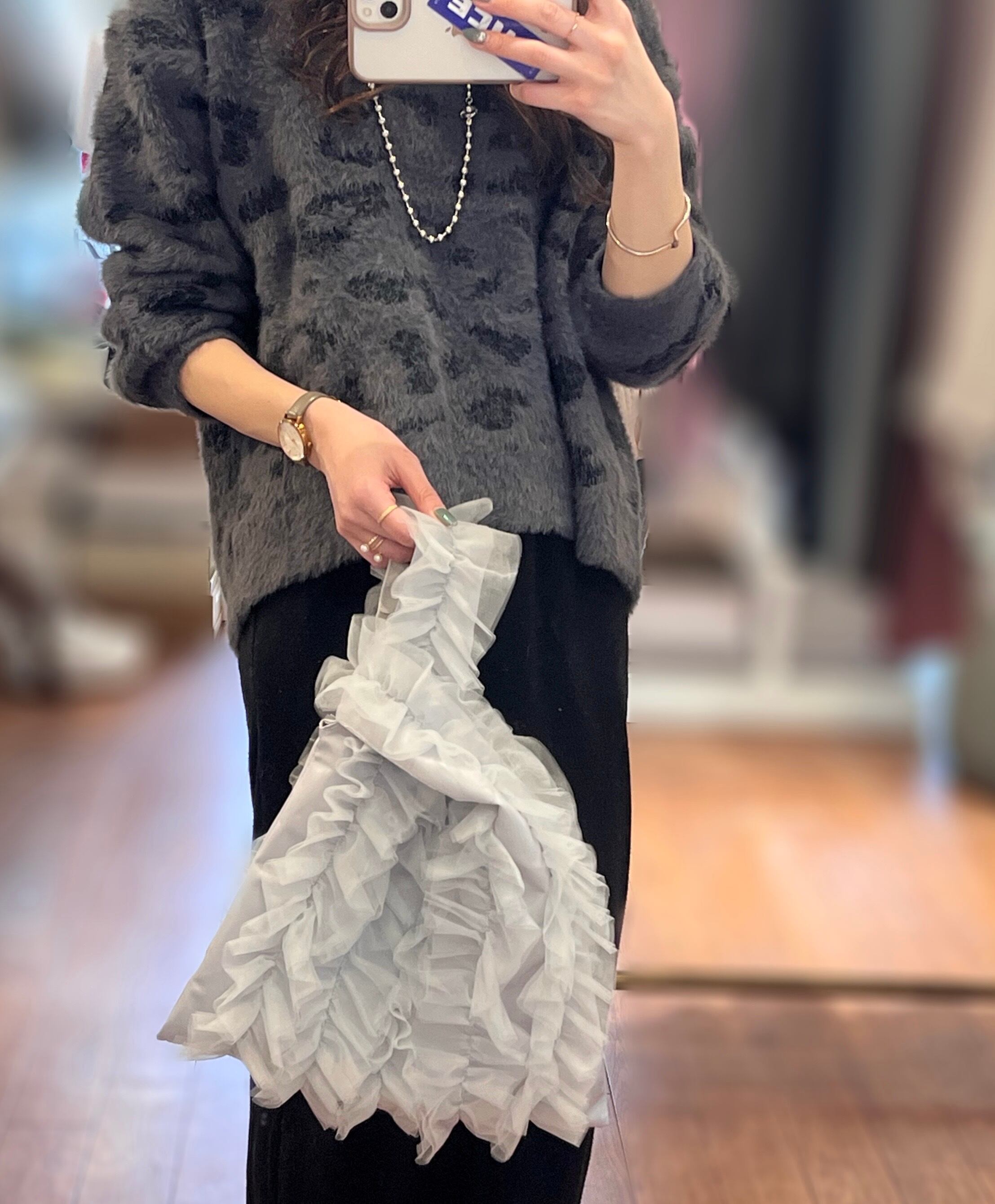 大胆なチュールフリルが全面にあしらわれたマルシェバッグ。