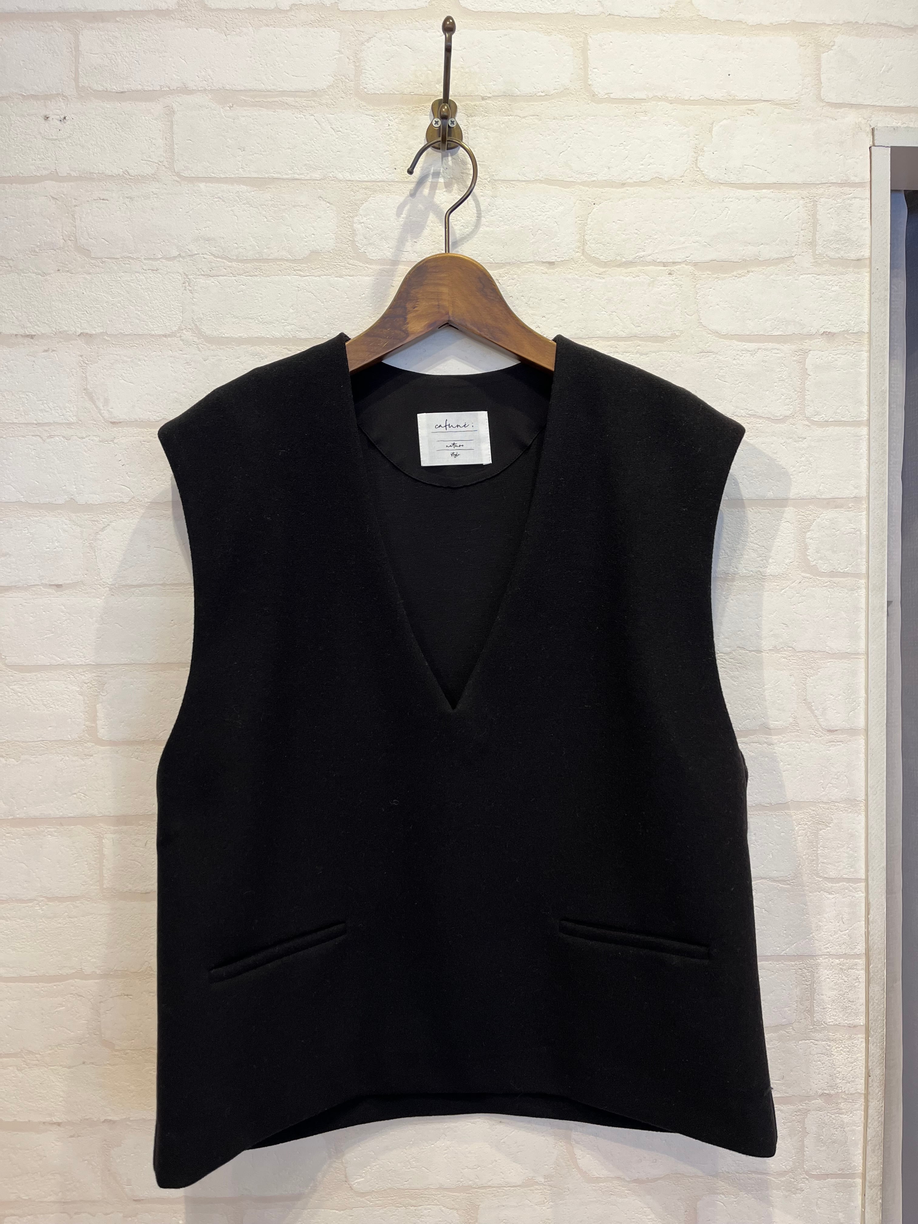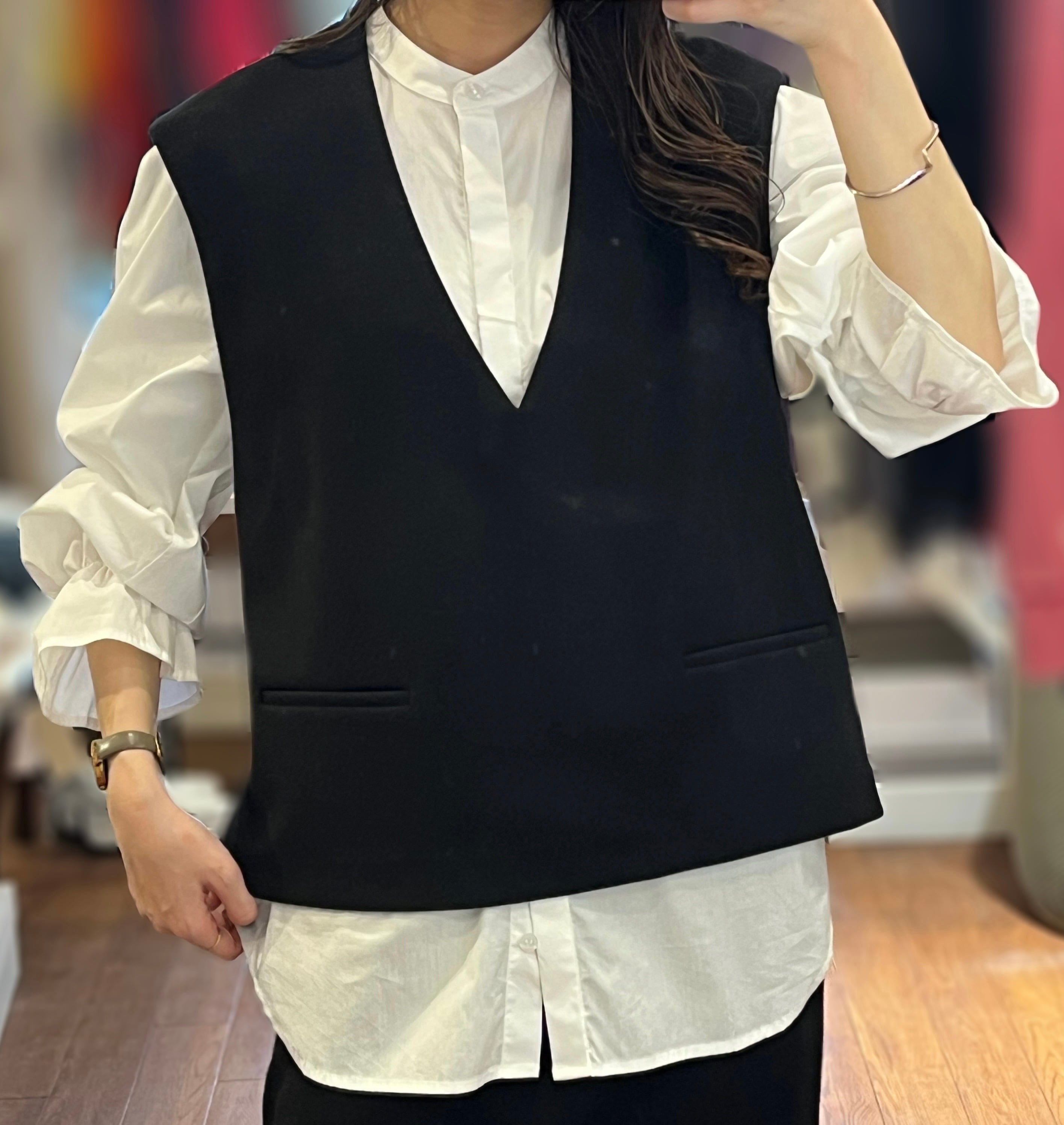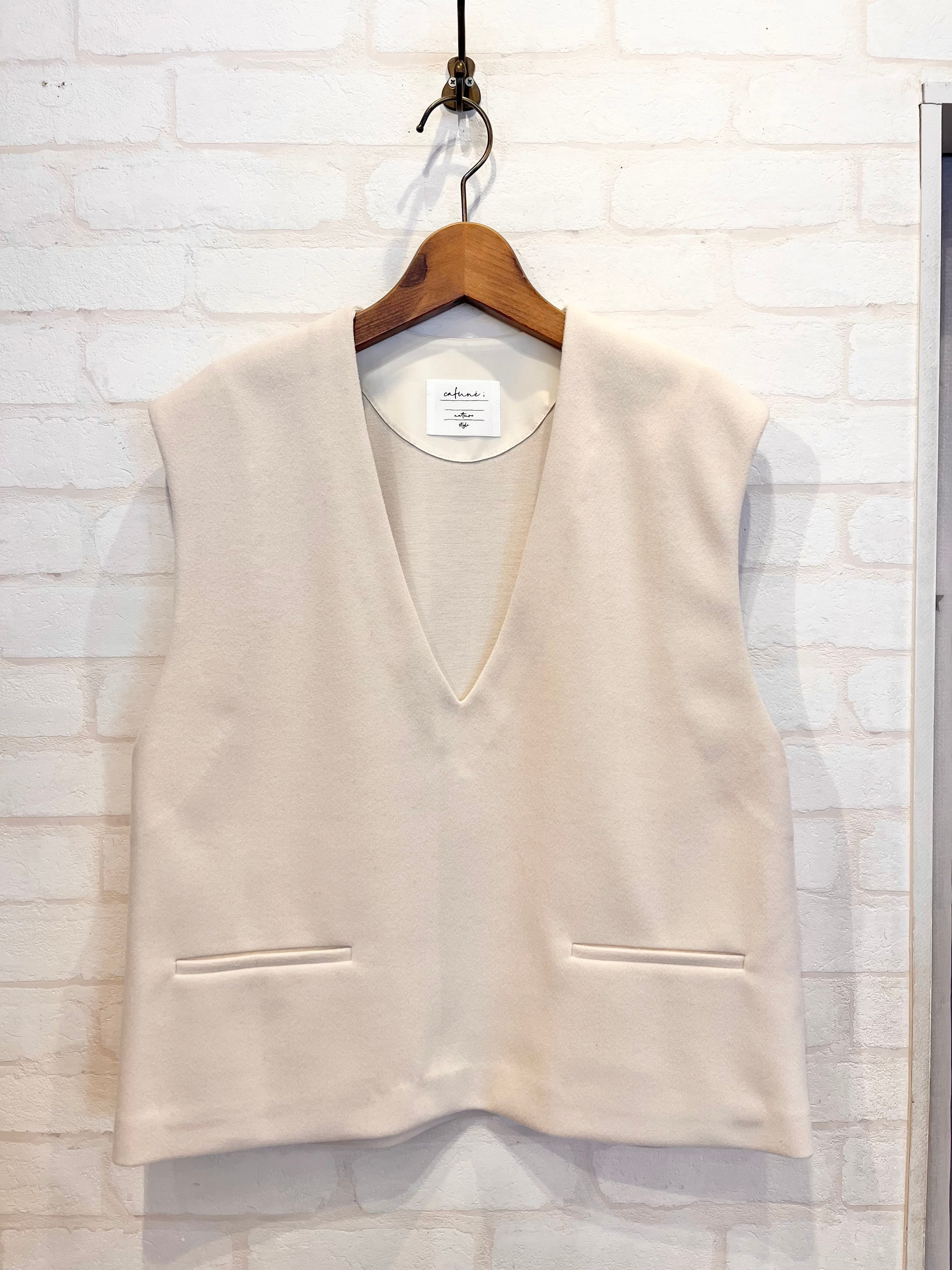 ストレッチのきいた素材で作られたVネックベスト。