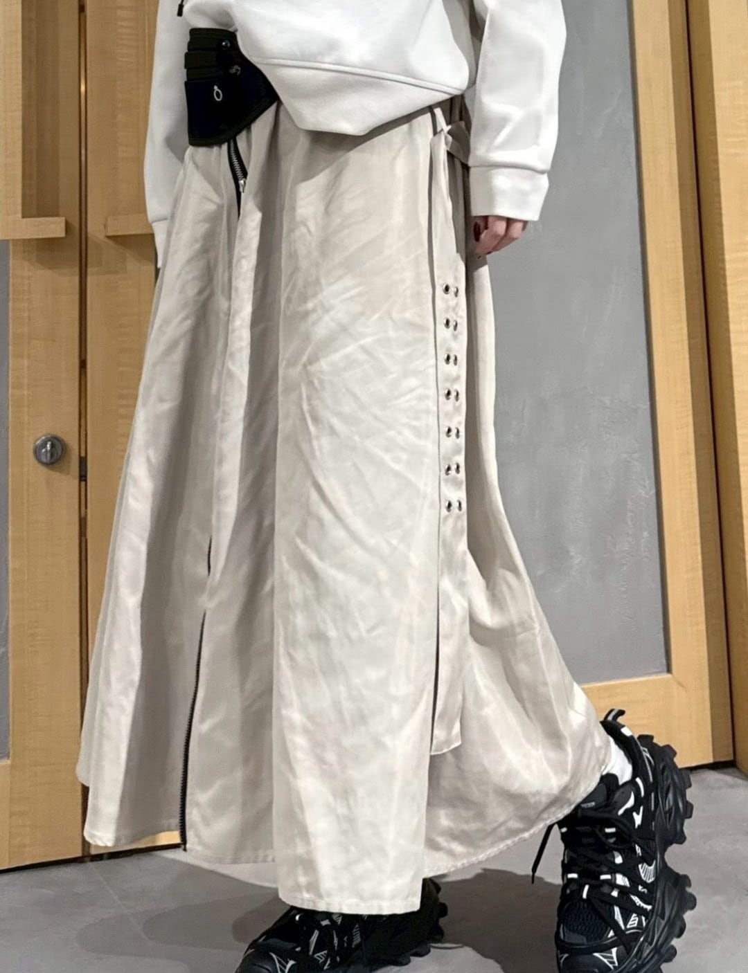 スカートは光沢感があり
