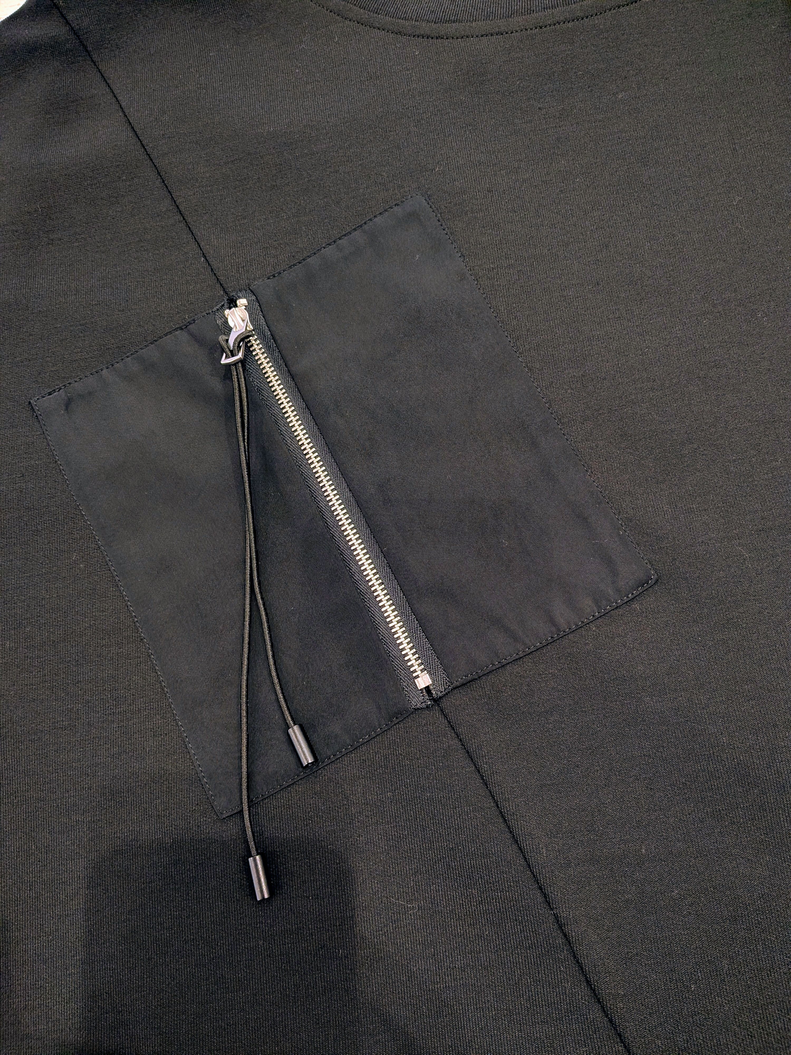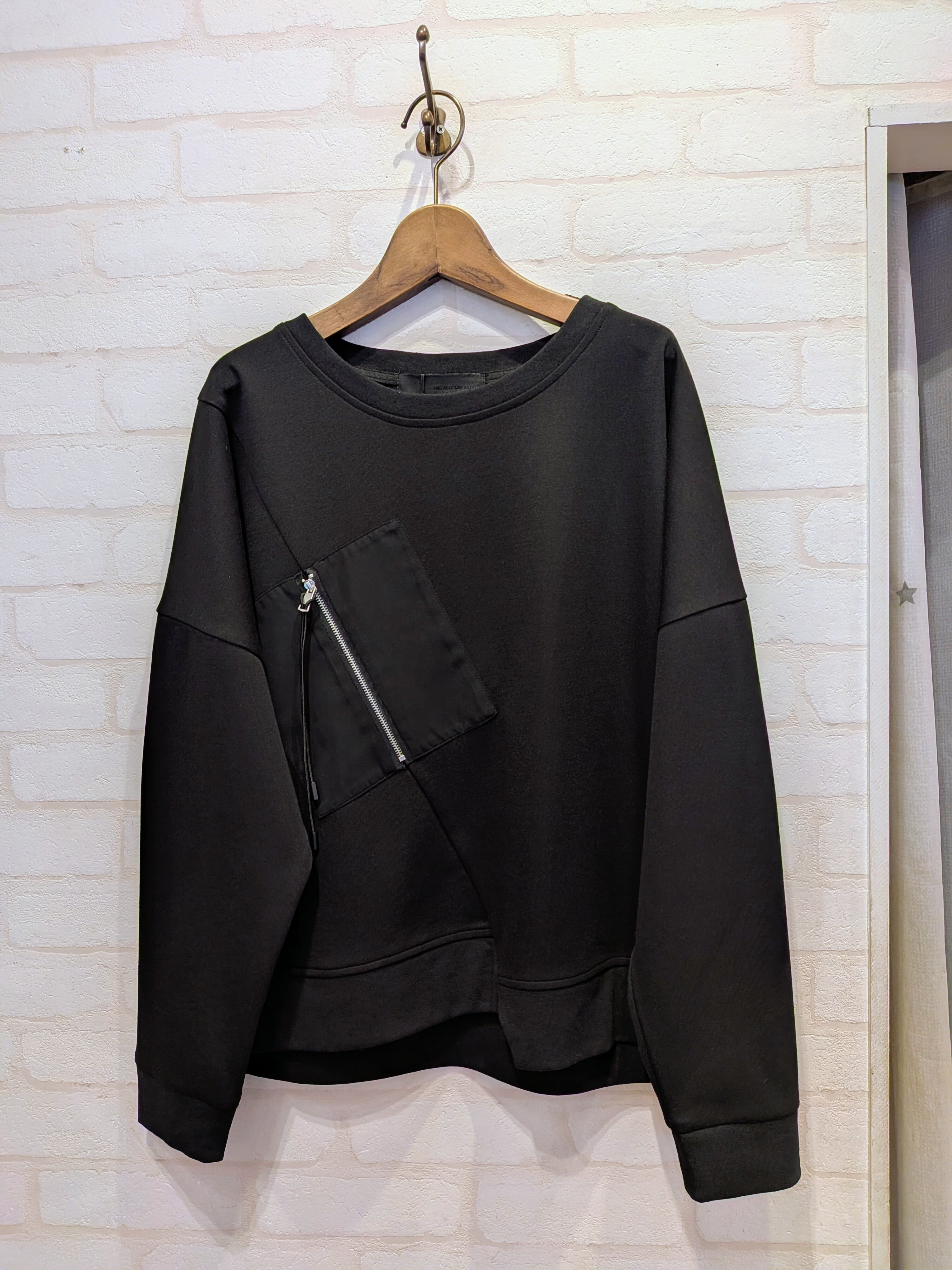 胸元の異素材ポケットと
