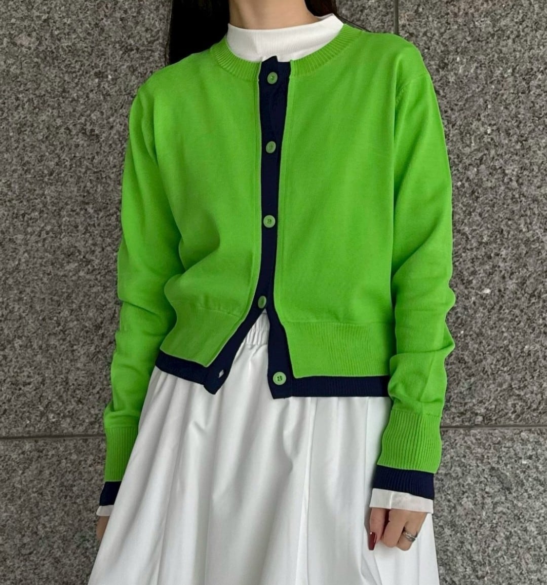 シンプルなのに印象的なバイカラーカーディガン♡