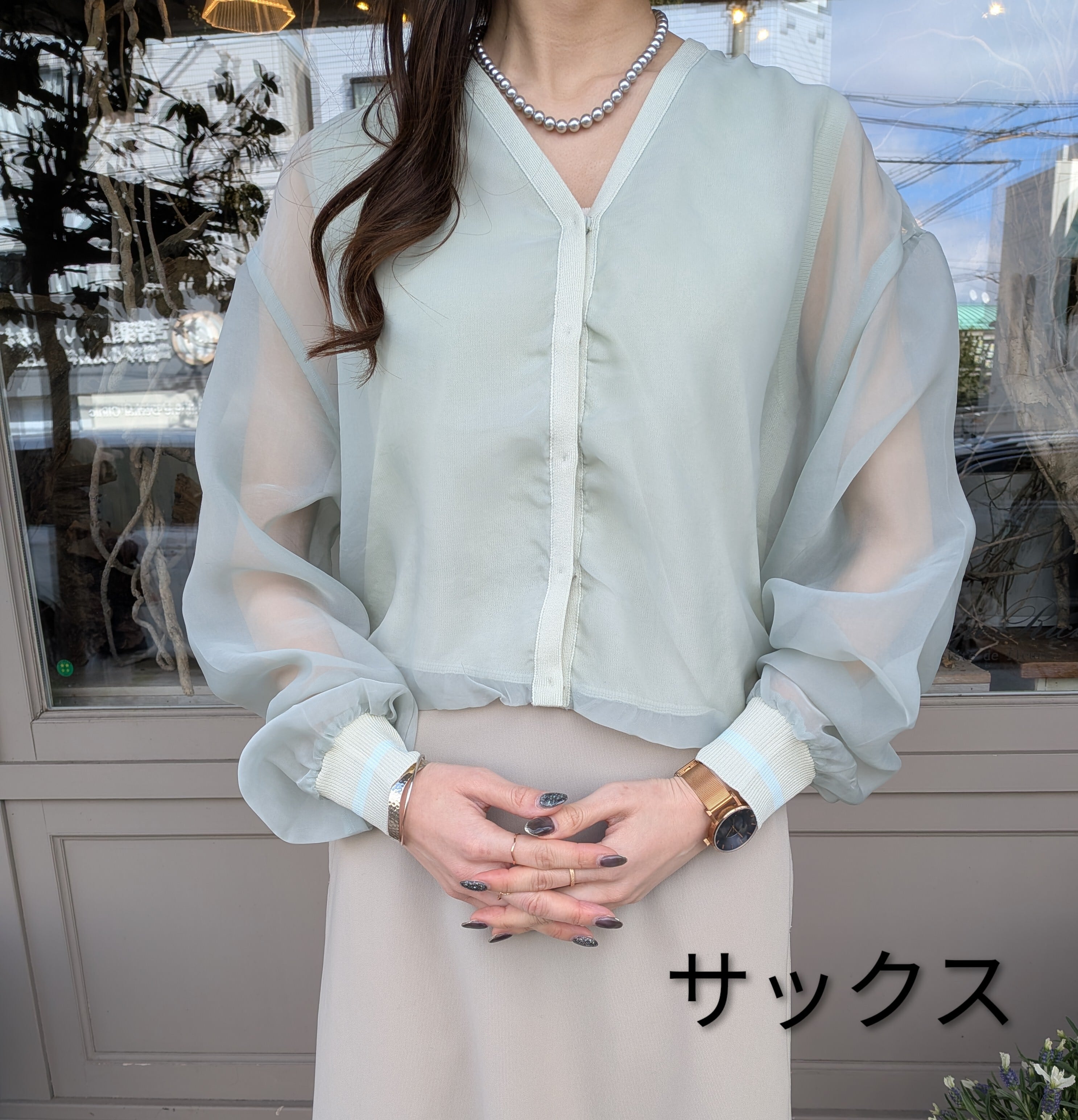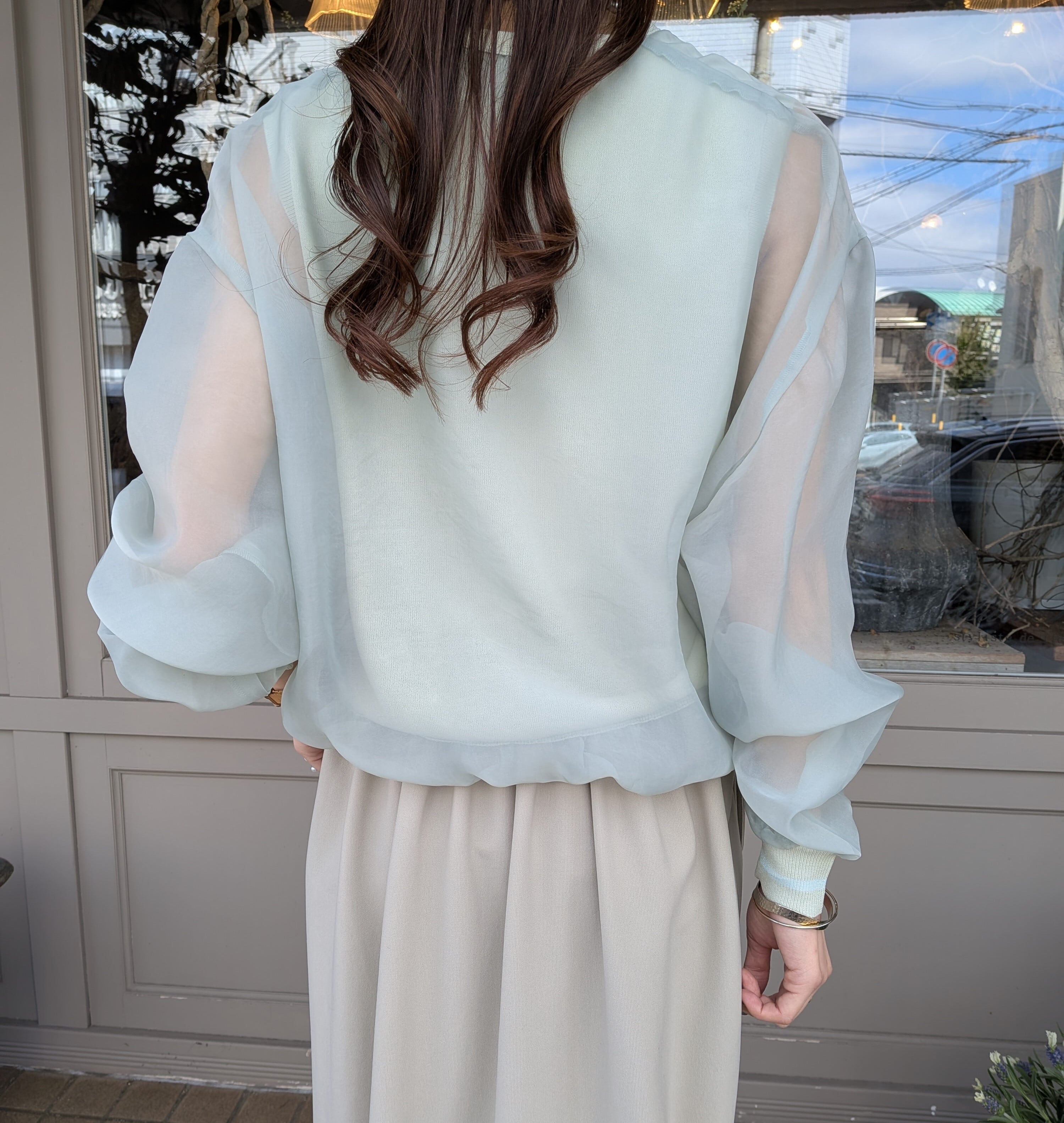 ふんわり透け感のあるシアースリーブが