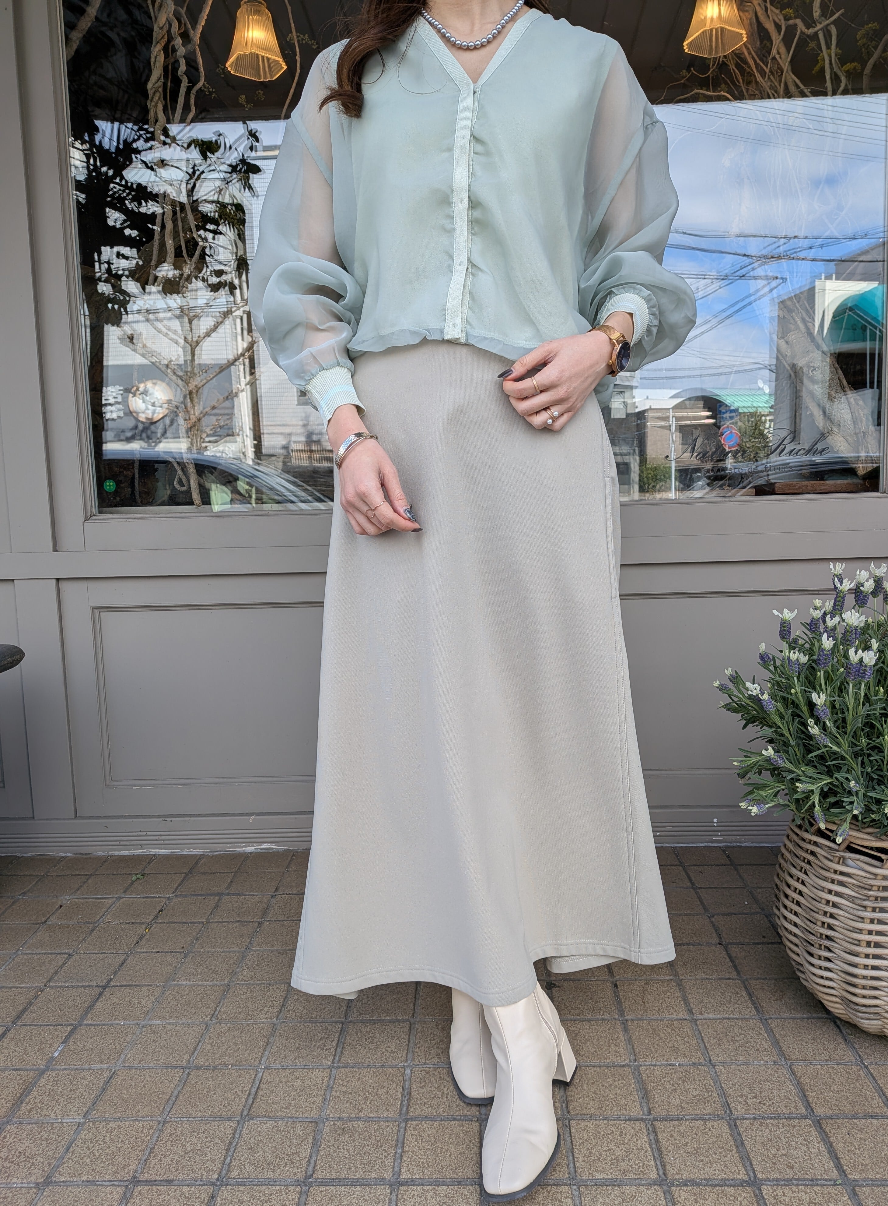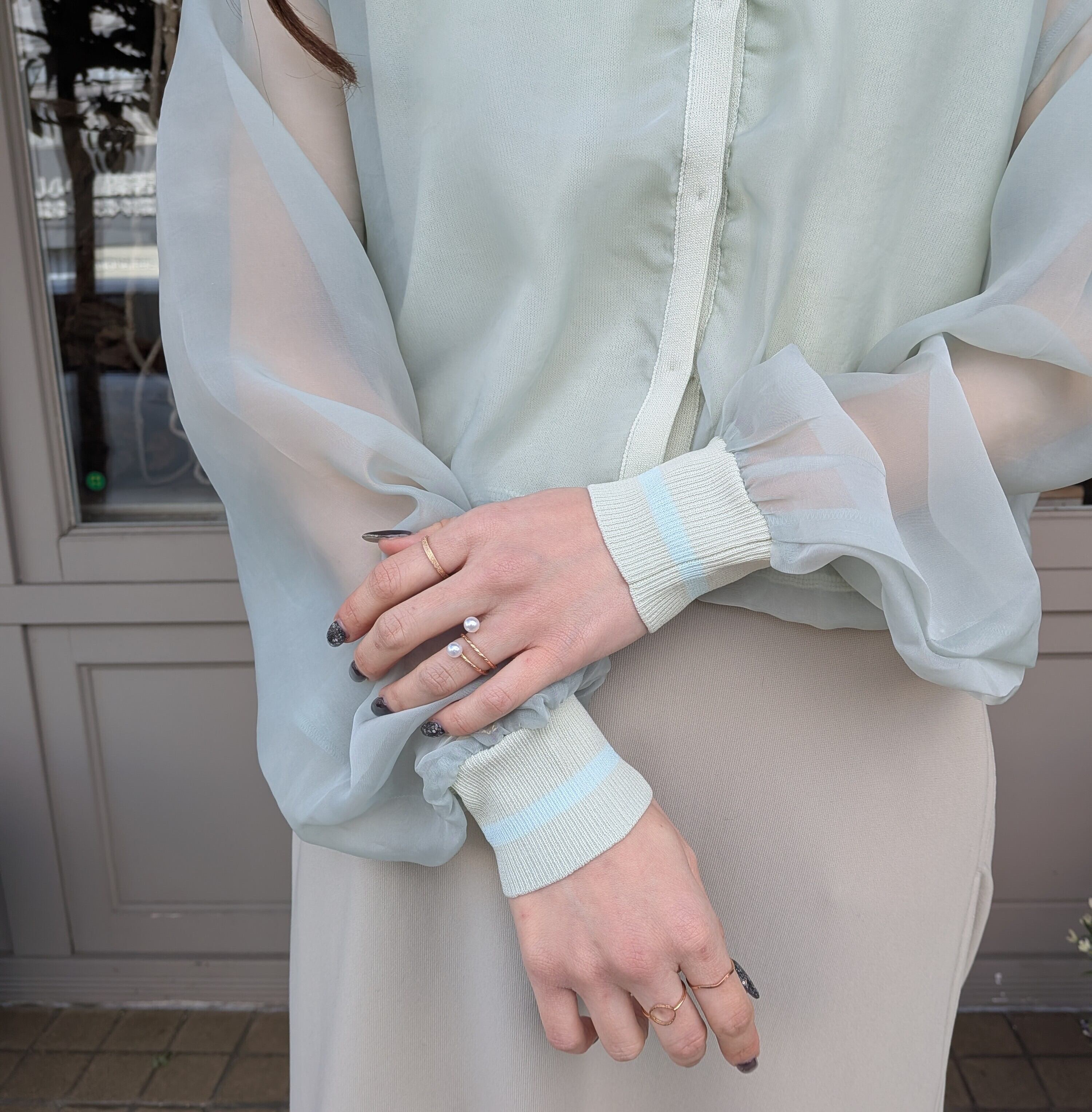 オーガンジー×ニットカーディガン♡