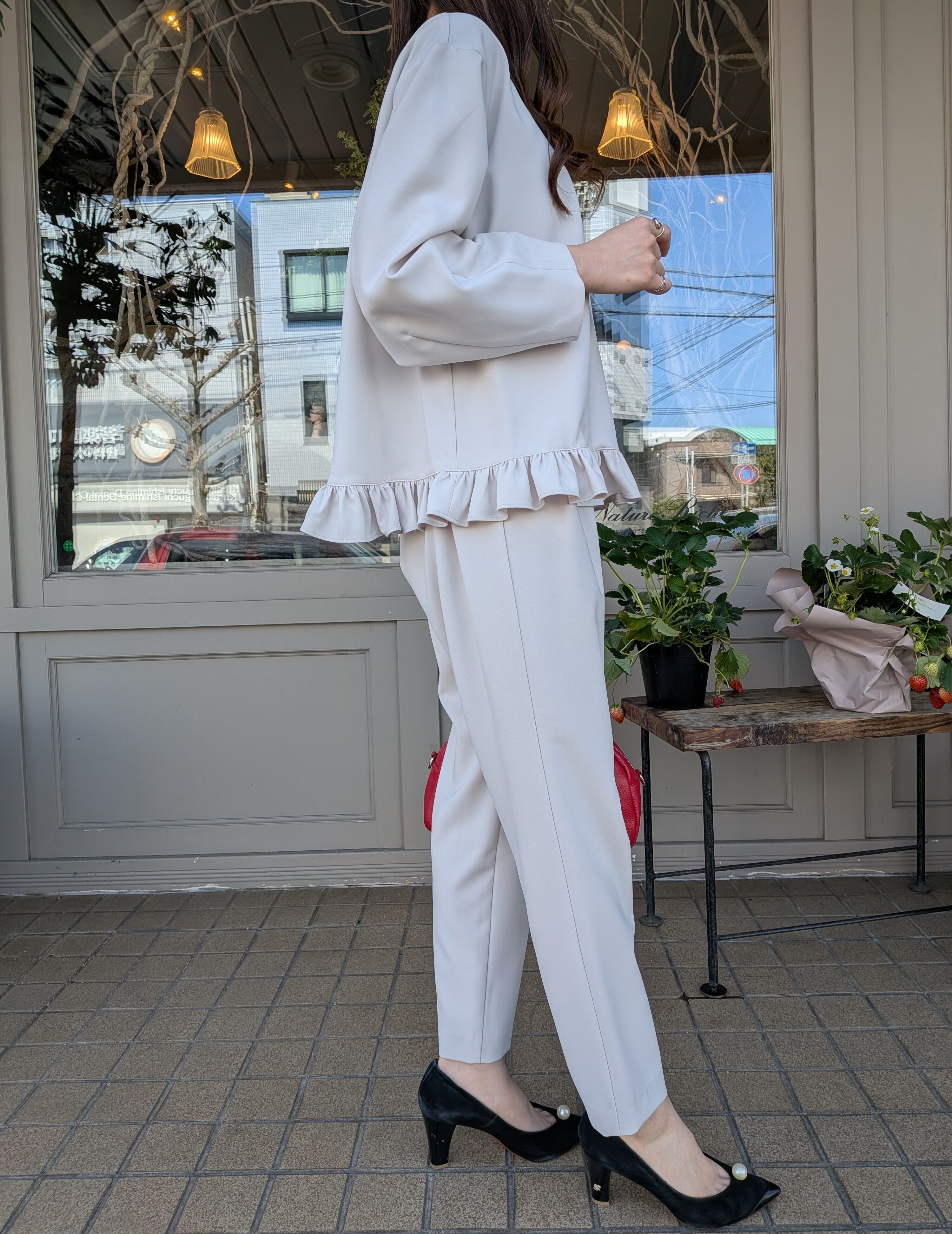 ※同素材の裾フリルブラウスと