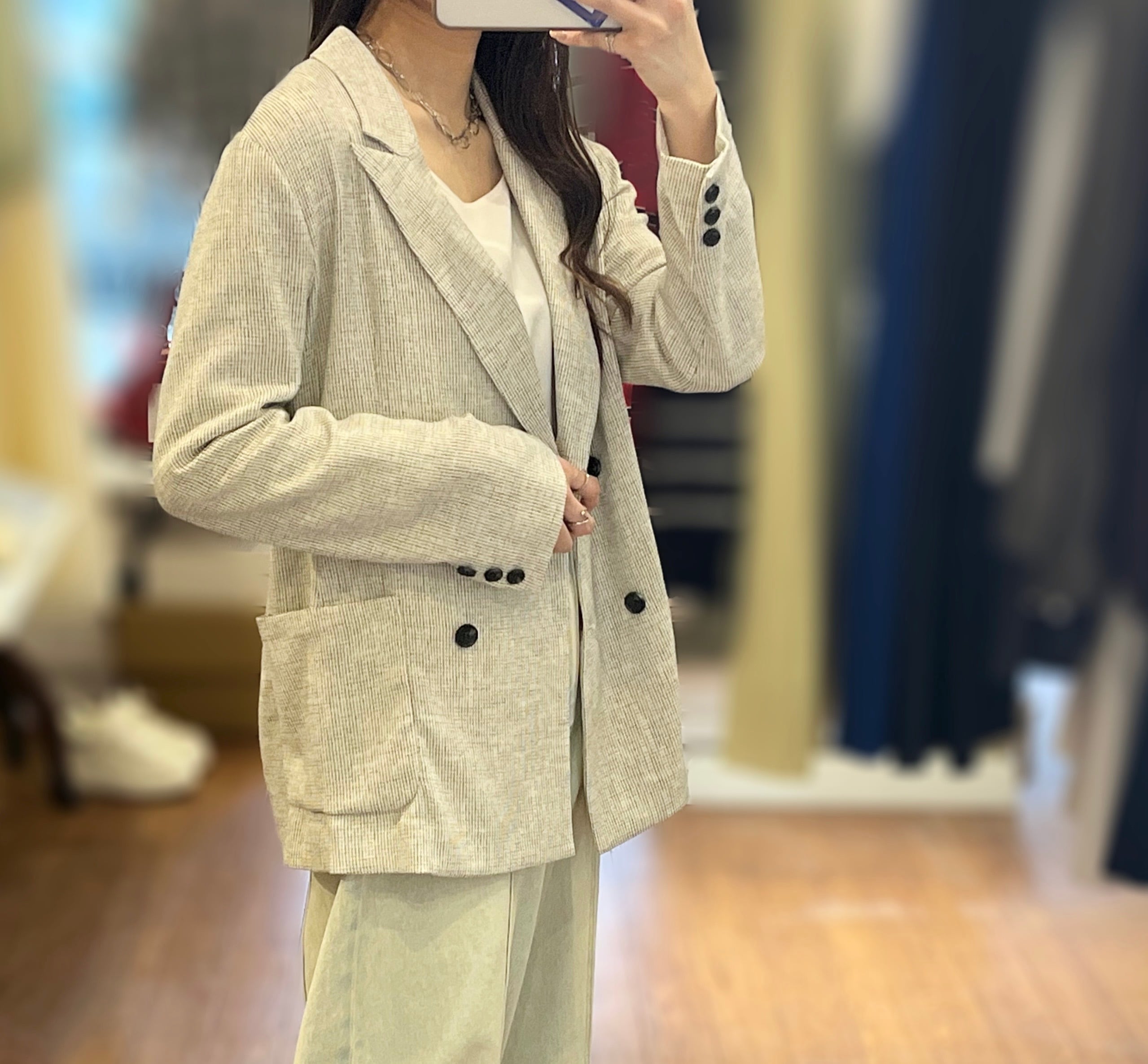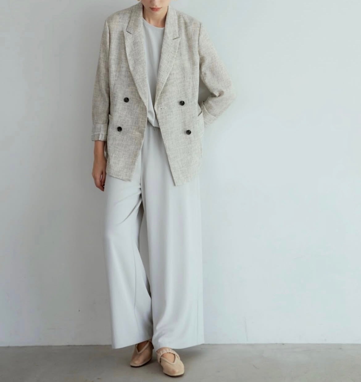 ほんのりシアー感のあるツイードジャケット。