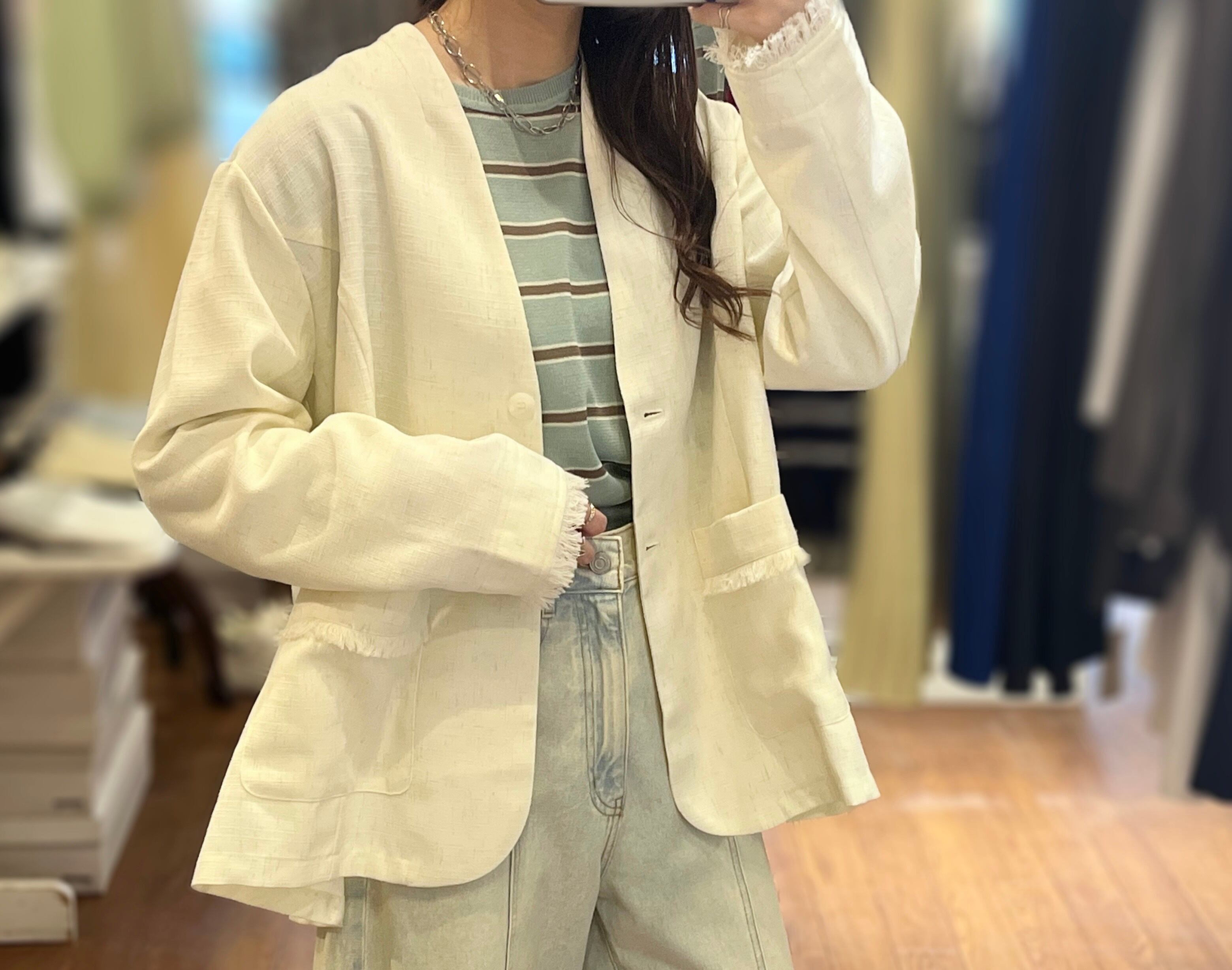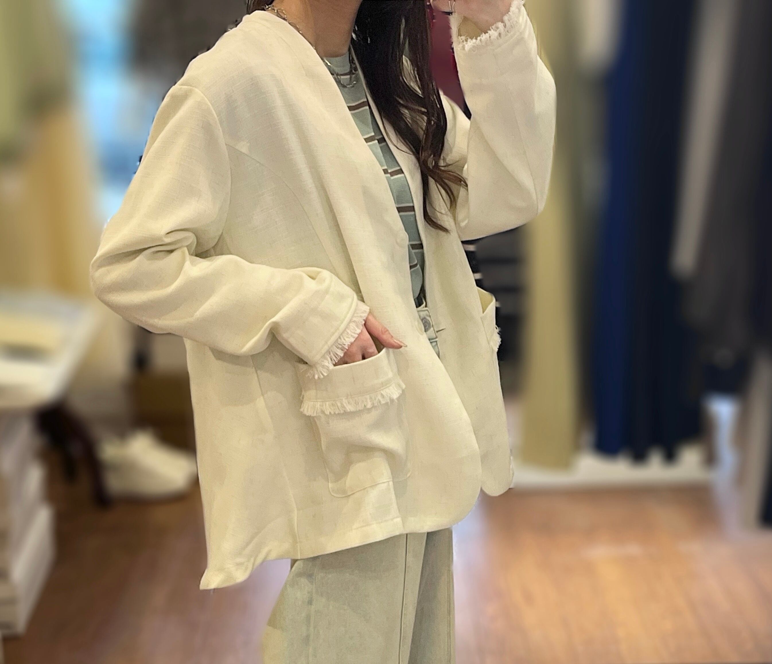 さりげなく広がるシルエットが上品なAラインジャケット。