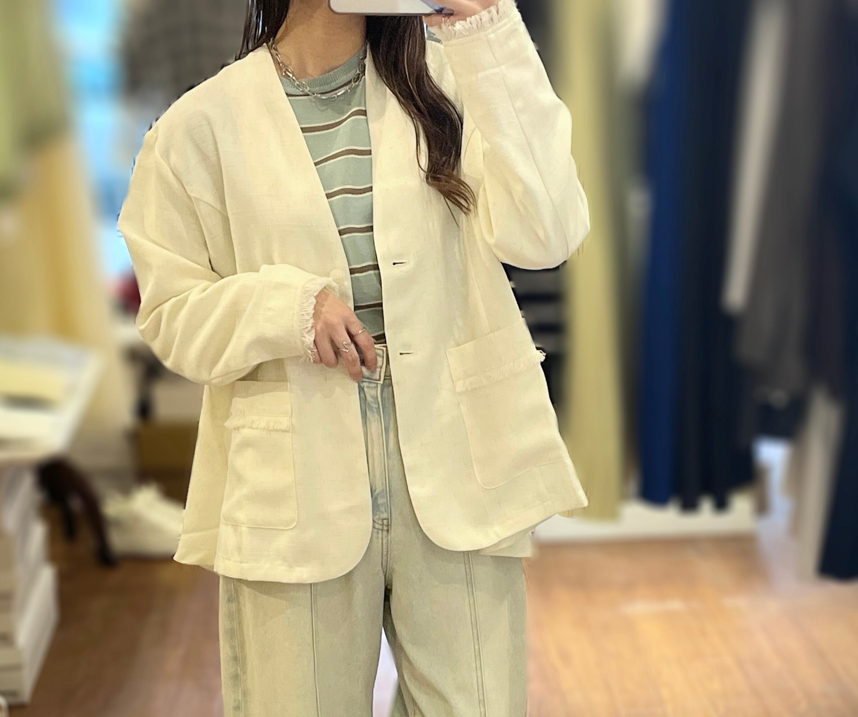 カジュアルにもキチンとにも使い回せるジャケットです。