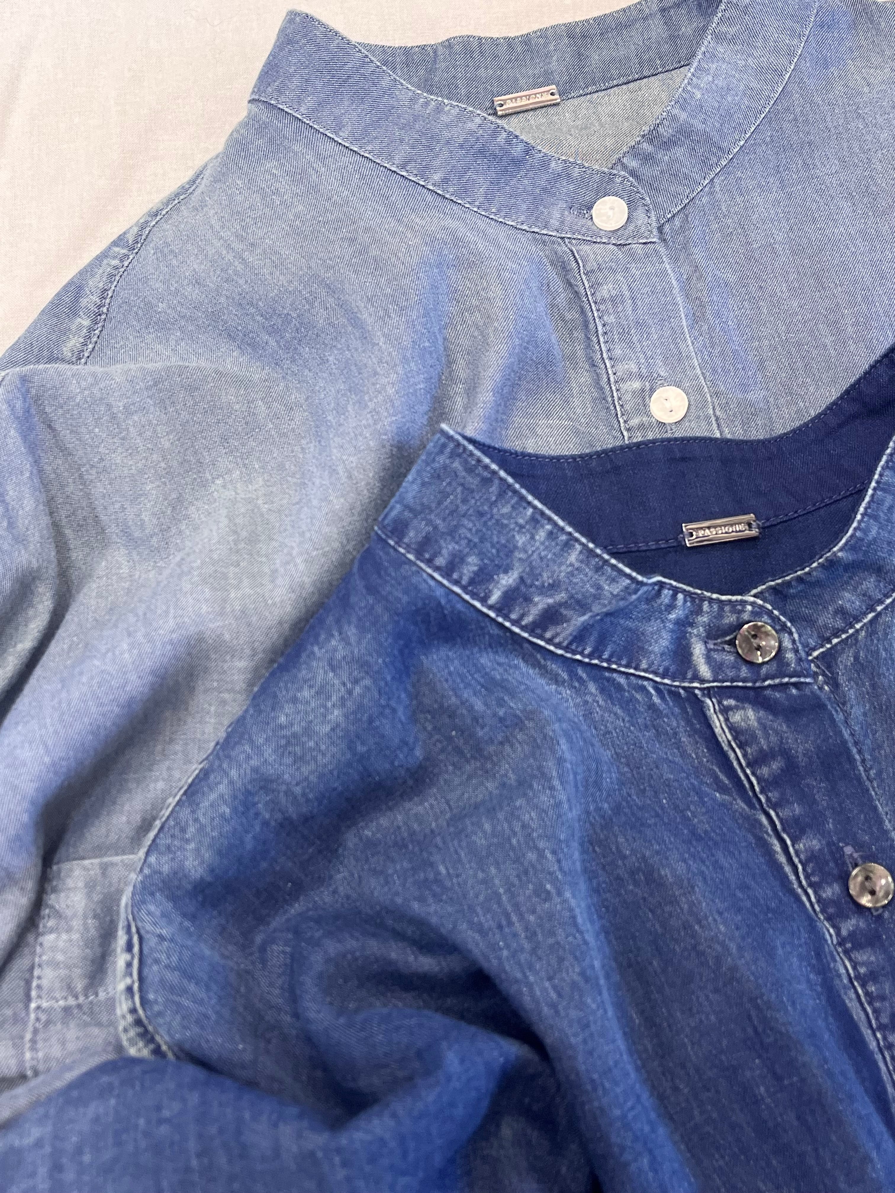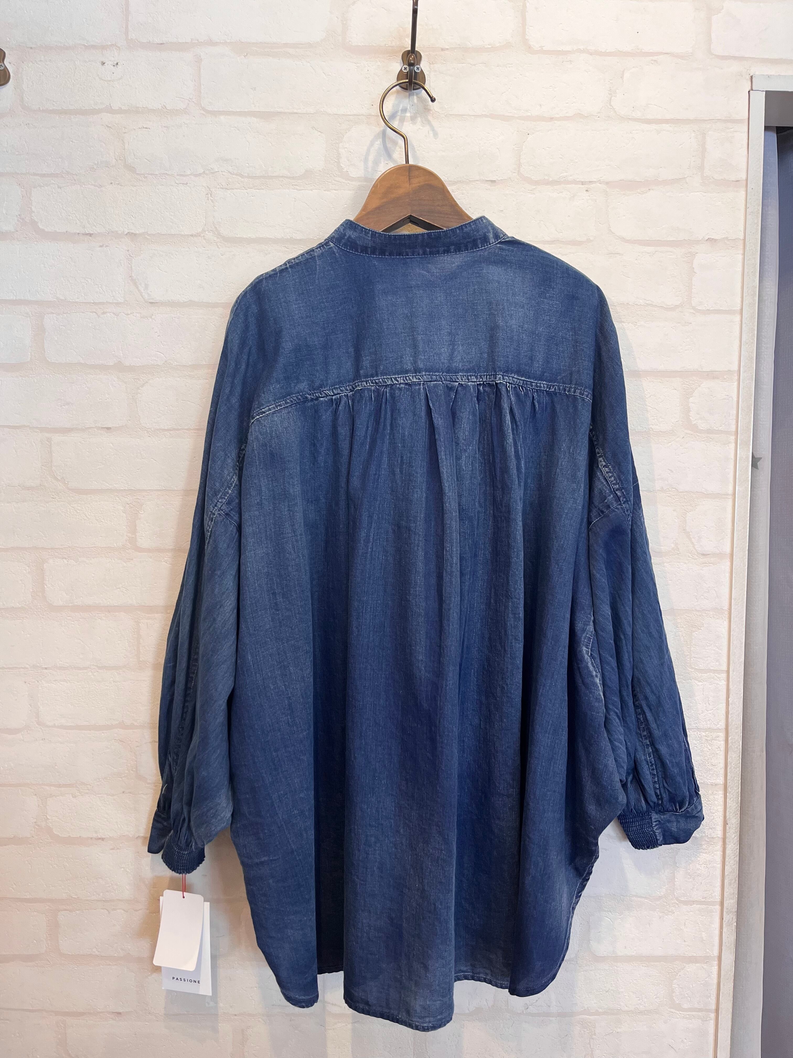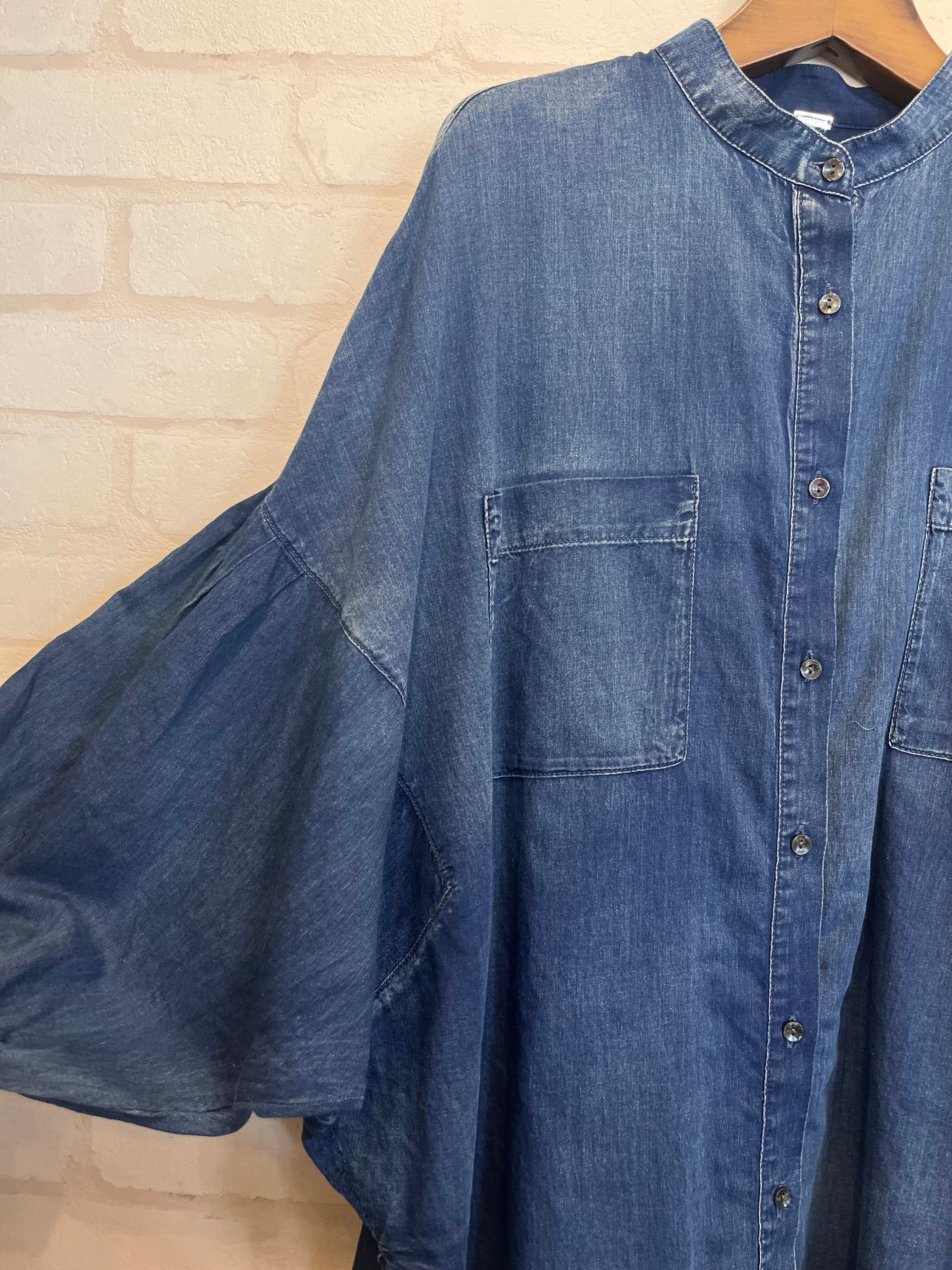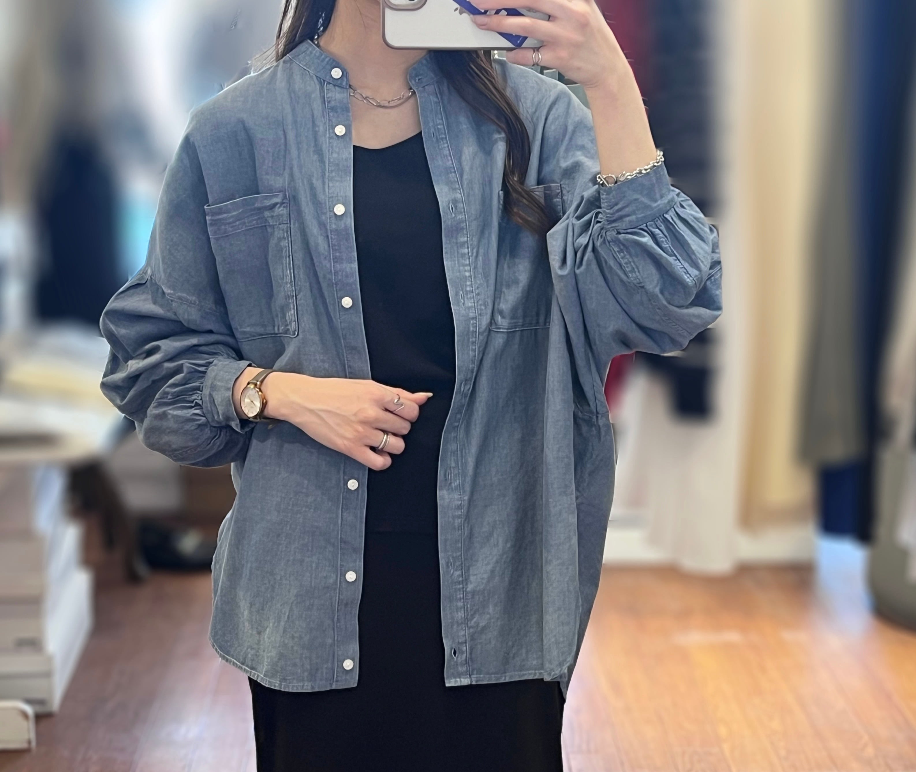 ドルマンスリーブのゆったりシルエットデニムシャツ。