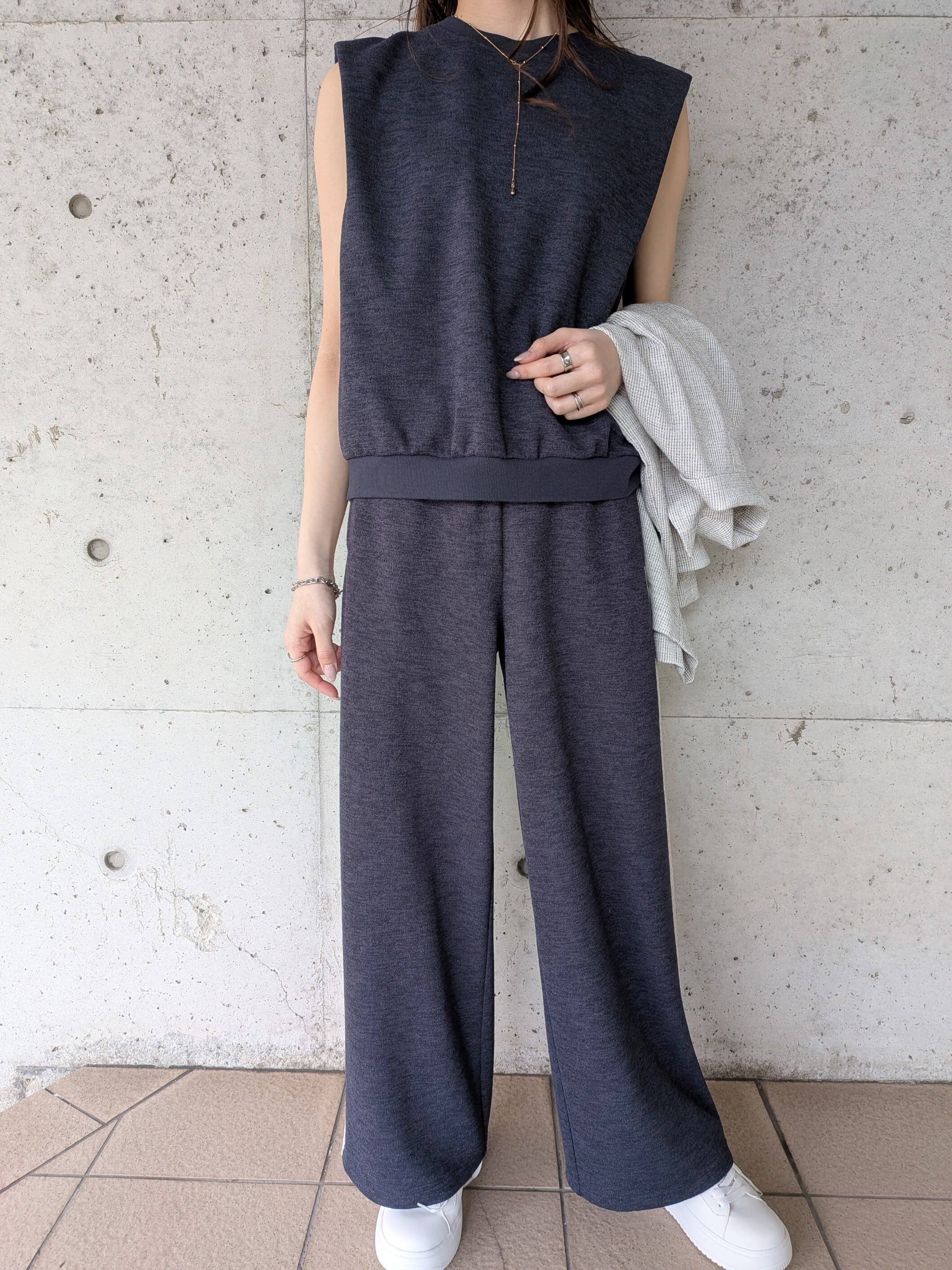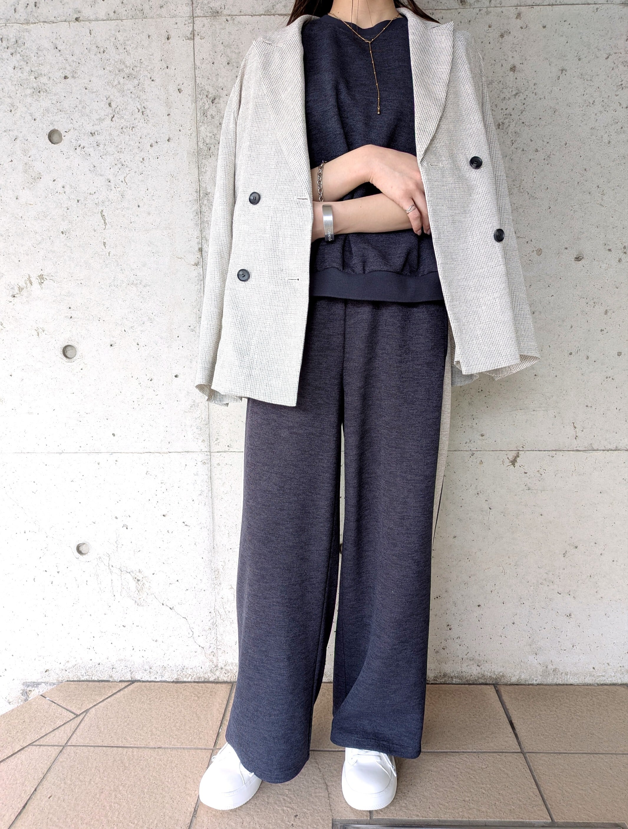 ※同素材のスウェットニットサイドラインパンツとセットアップで着ていただけます