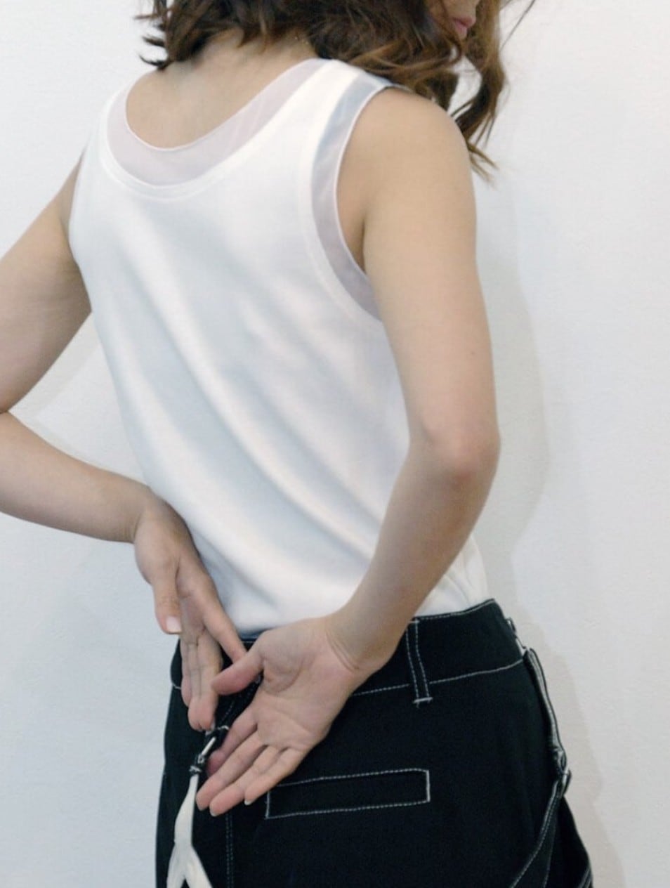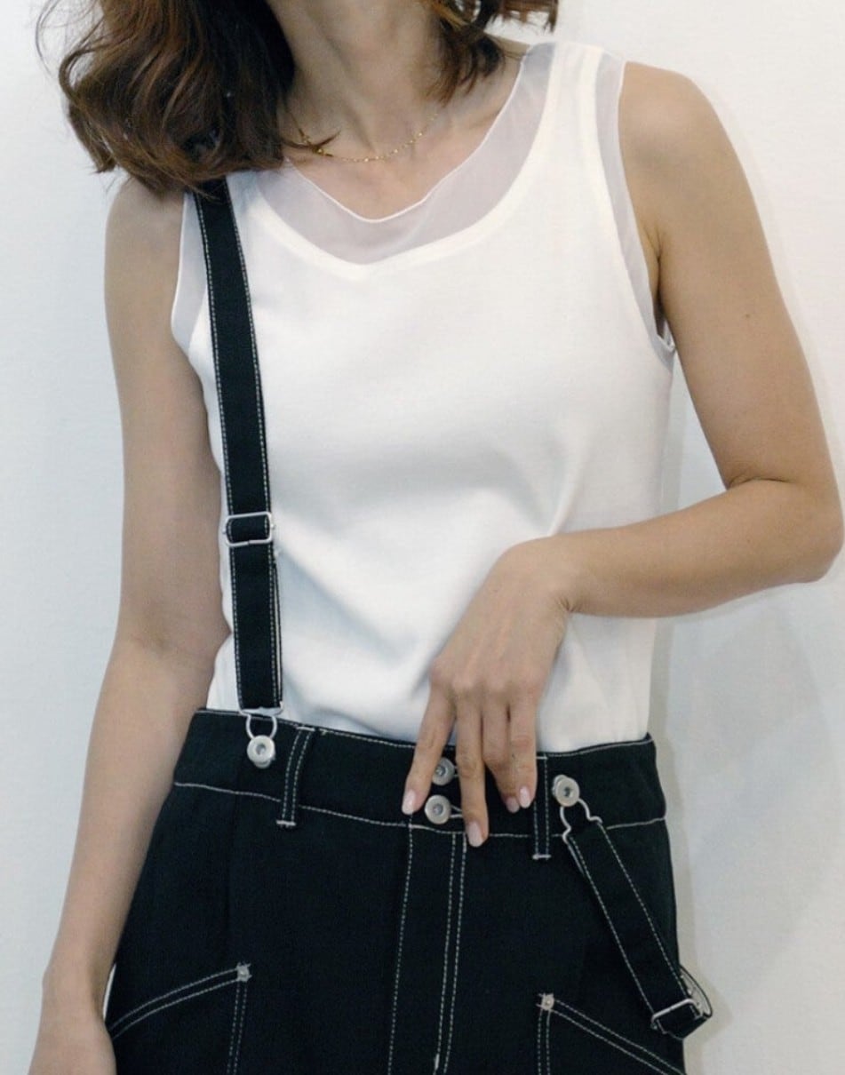 シフォン切り替えノースリーブカットソー B-chad