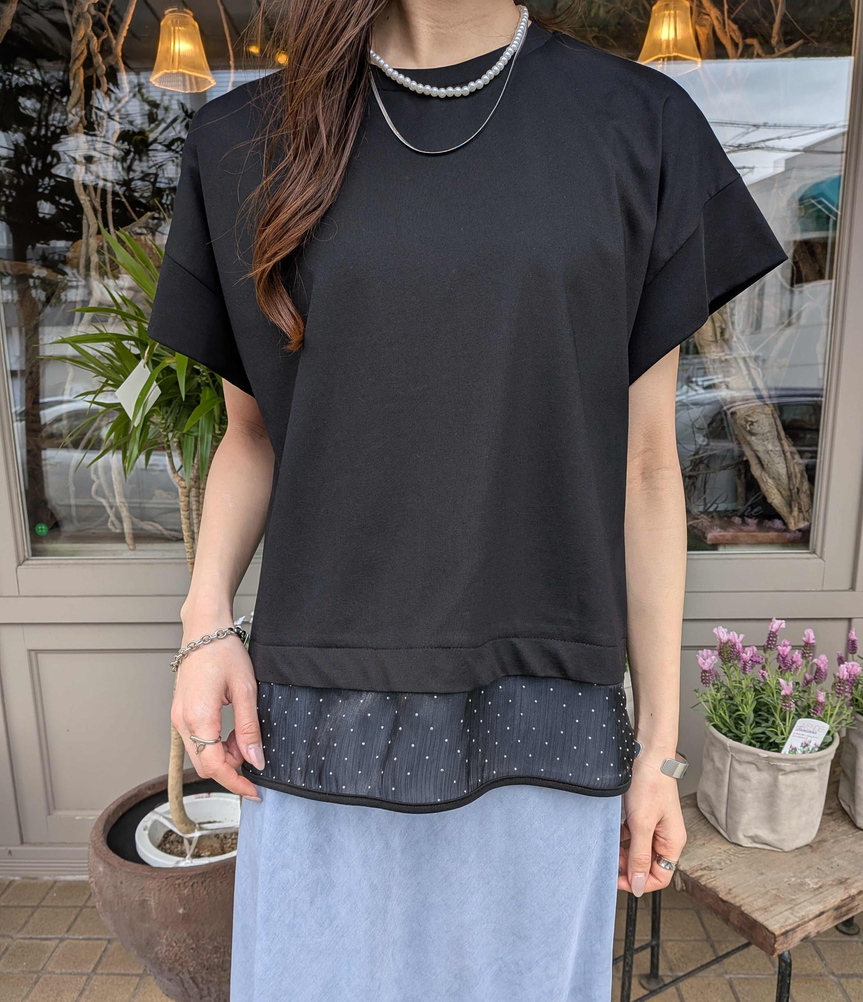シアー素材×キラキララインストーンが上品で