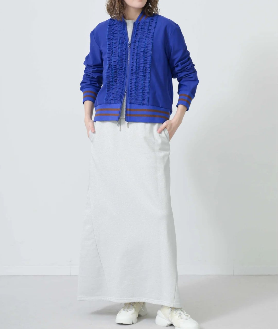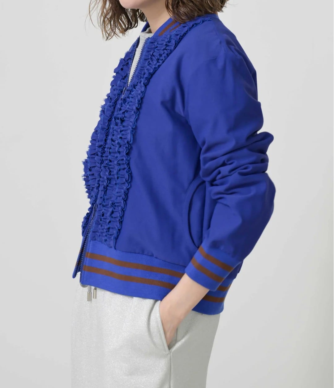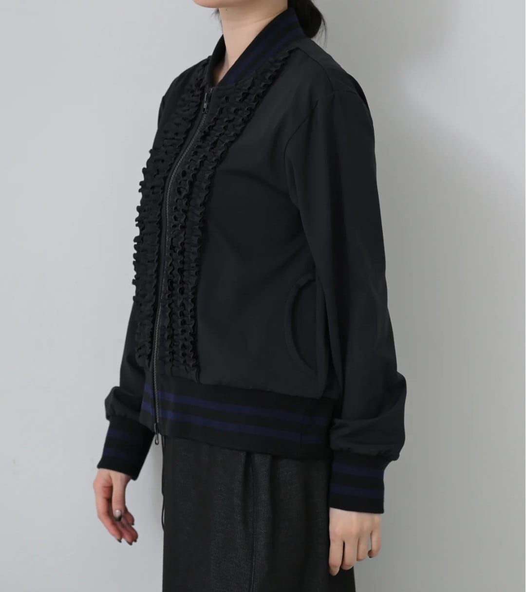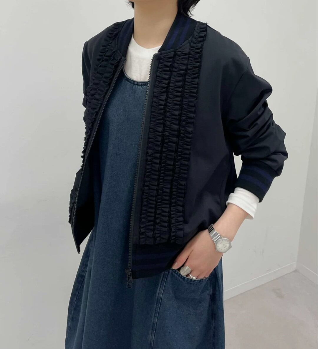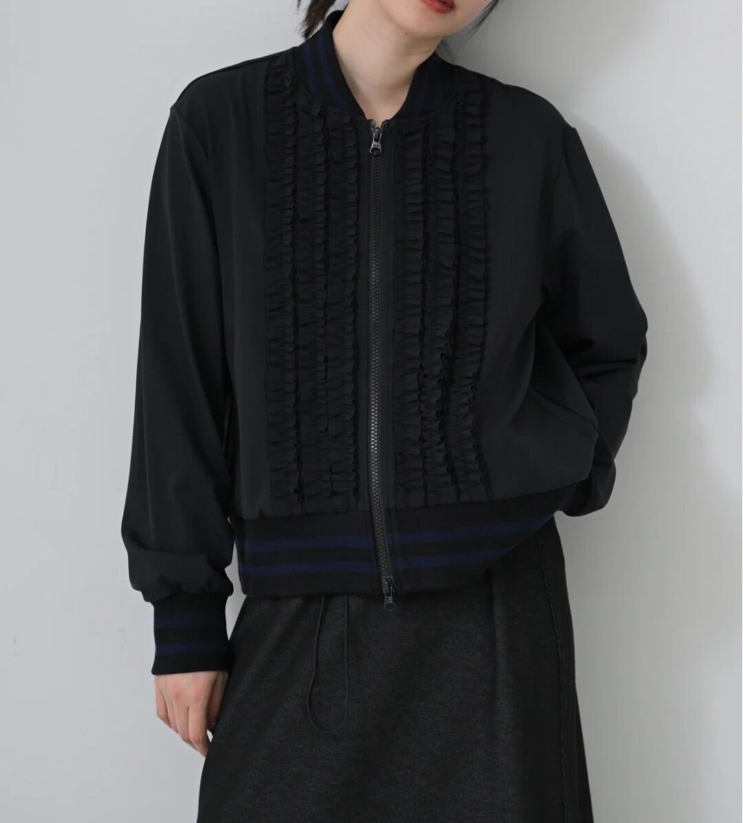 フロントのフリルが目を惹く華やぎブルゾン♡